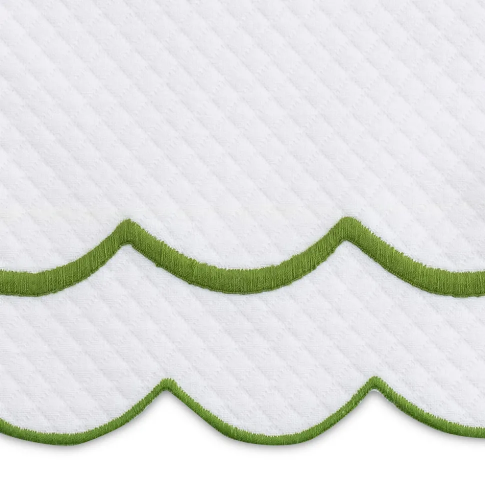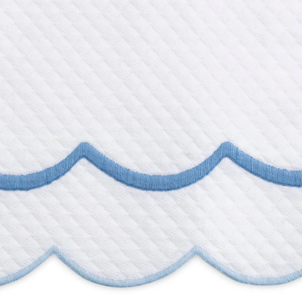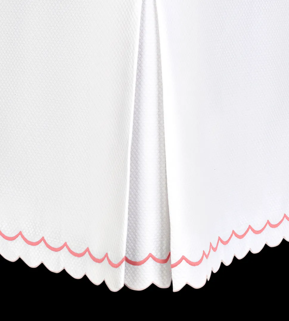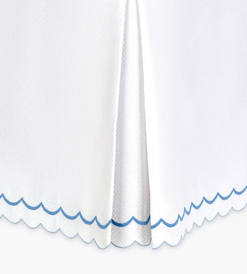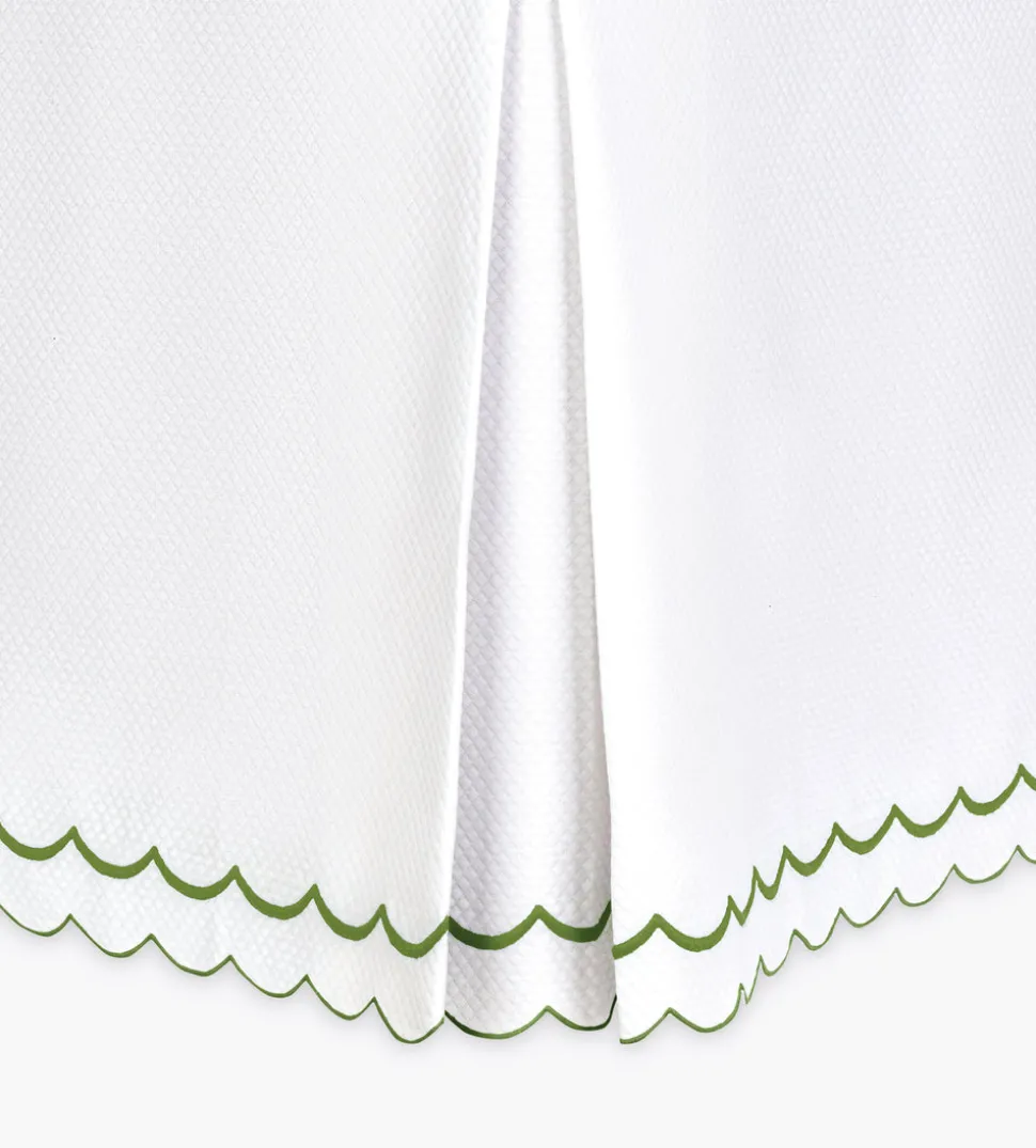 For nearly 100 years and three generations, Matouk has handcrafted luxury linens from the world’s finest materials. Their dedicated artisans in Fall River, Massachusetts are committed to creating the highest quality, most-loved bed, bath, and table linens for your home. The India Pique Bed Skirt offers a playful take on line and color with double-scallop embroidery on timeless diamond piqué cotton, and finished with s two-tone edges in a range of delightful hues.