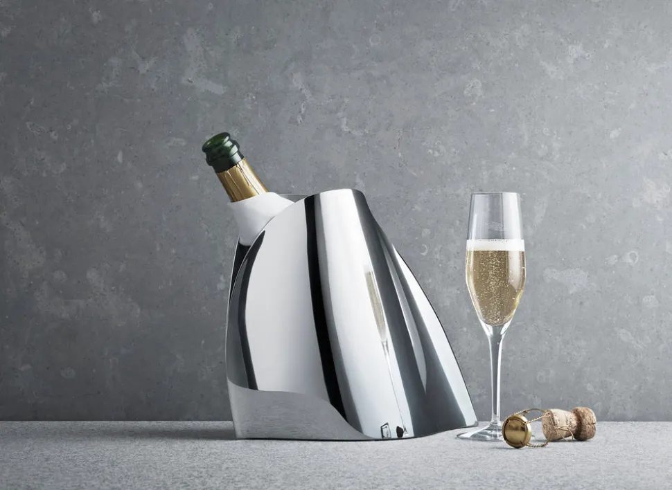 For over a century, Georg Jensen has developed jewelry, silverware, and home decor with purposeful, timeless, and functional beauty in mind. Rooted in Scandinavia, and inspired by the lines of Art Nouveau, the brand innovates, sustainable, unmistakable design with a distinctive vigor and unmatched quality. The Indulgence Champagne Cooler with Cloth chills your champagne in style, and ensures that your bubbles remain cool once you have popped the cork and poured the first glass. Its elliptical opening looks organic and the slant of the cooler holds the bottle at the perfect angle for easy removal and replacement.