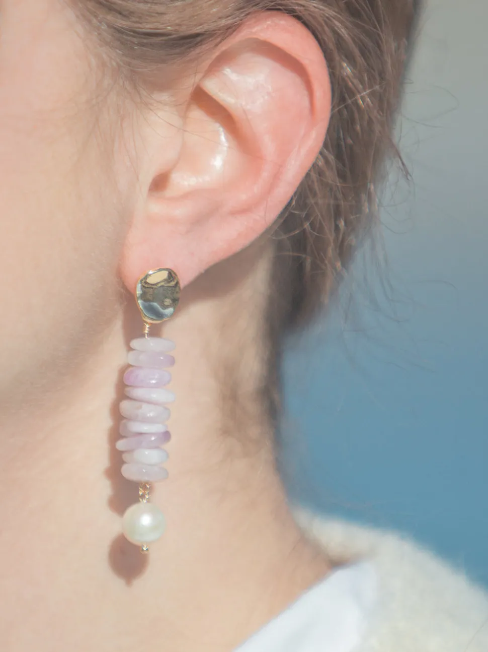 From Newport, Rhode Island, designer Kerry McGauley uses her experience in the fashion industry and inspiration from the town’s picturesque shoreline to craft singular yet timeless pieces—shining at the most special events, and through your everyday. Boasting delicate kunzite and freshwater pearls in dangling geometric formation, the Ingrid Earrings are at once classic and modern.