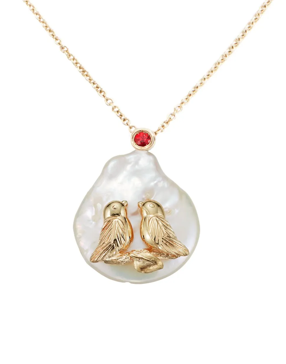 18K yellow gold vermeil and 9K gold.Natural pearl, 9K gold, red sapphire, 18K yellow gold vermeil. Custom variations are available. Made in Italy.