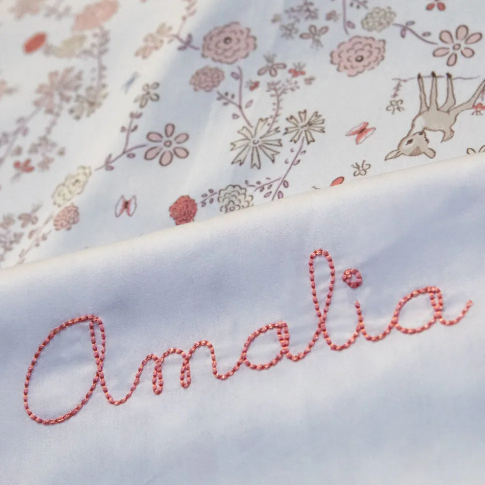 Customized embroidery of up to 21 characters is available on the duvet cover. Sateen-weave cotton. Certified Standard 100 by OEKO-TEX. Made in Portugal and Denmark.