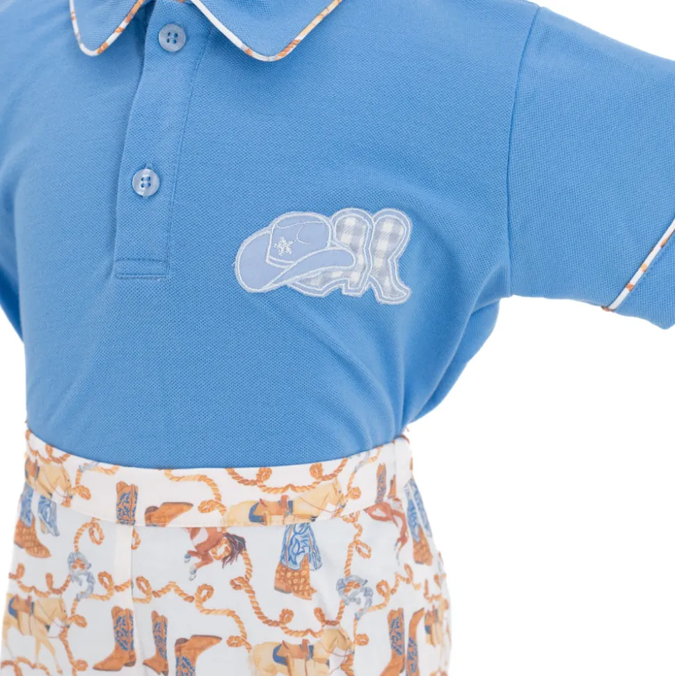 Inspired by the beauty of motherhood, Dondolo is a luxury lifestyle brand that provides beautiful, heirloom-quality clothing for generations to come. Each design is thoughtfully crafted in Colombia with ethical manufacturing, making every piece even more special. The Jackson Boy Polo Set brings a spirited nod to Texas charm with refined craftsmanship and playful detailing. This two-piece set features a classic polo shirt with contrasting trim at the collar and sleeves, embroidered boots and a hat at the chest, and pull-on shorts for all-day ease. From summer fairs to family gatherings, this versatile look blends comfort and cowboy flair in equal measure.
