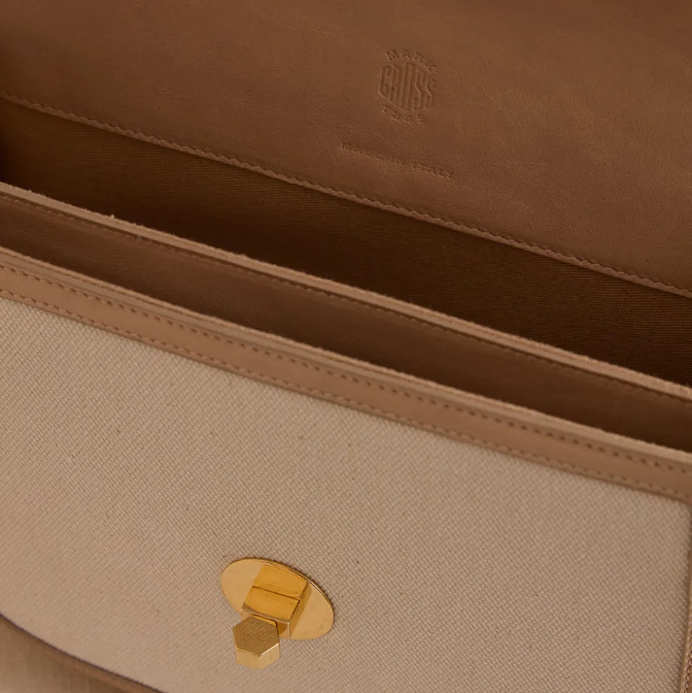 Founded in 1845 in Boston, Mark Cross is the quintessential American luxury brand with an uncompromising commitment to quality, elevated details, and nonchalant reworking of classic silhouettes. The signature shapes are discrete icons of pop culture, notably the overnight valise carried by Grace Kelly in Rear Window, designed by Gerald Murphy, the former president and ‘Lost Generation’ figurehead. The Jane in Canvas Natural & Supple Soft Natural is a reissued archival design, thoughtfully updated with a refined clasp and warm seasonal tones. Crafted from durable natural canvas with tonal leather trim, this structured silhouette is lined in creamy lambskin suede—a classic companion for spring and beyond.