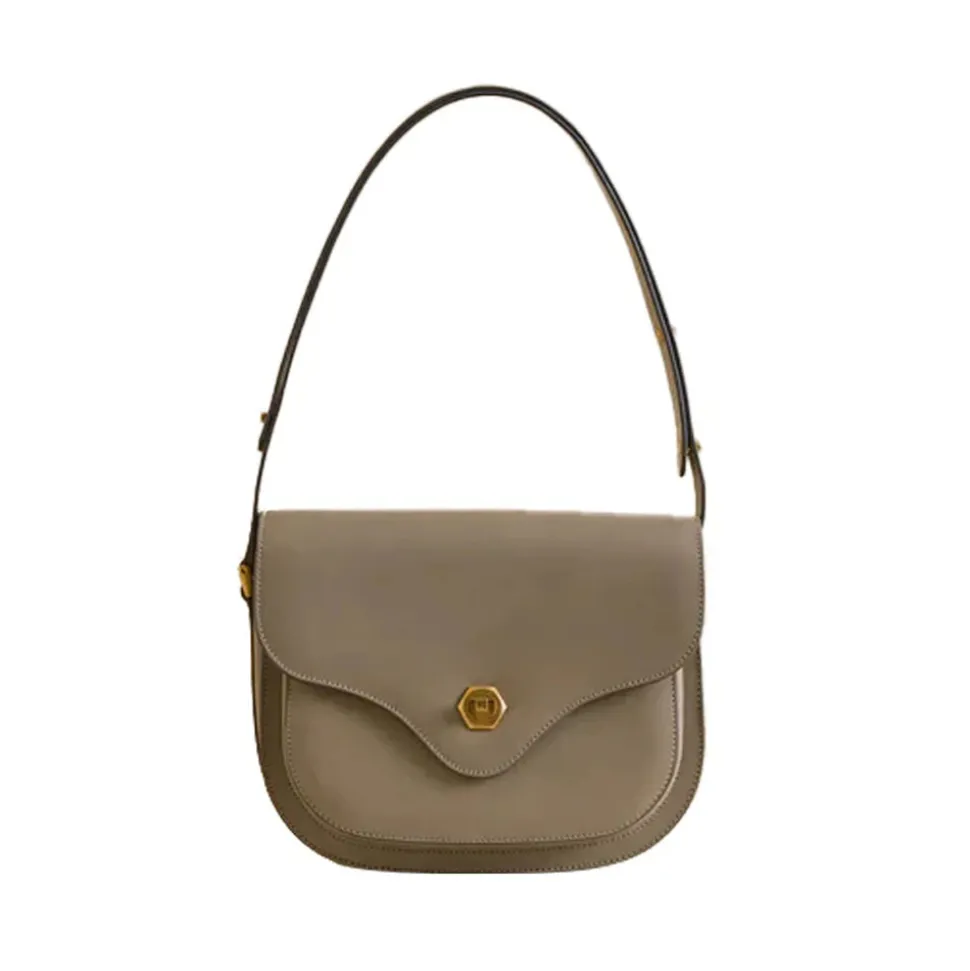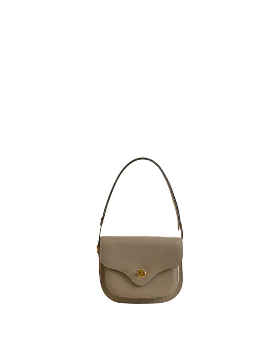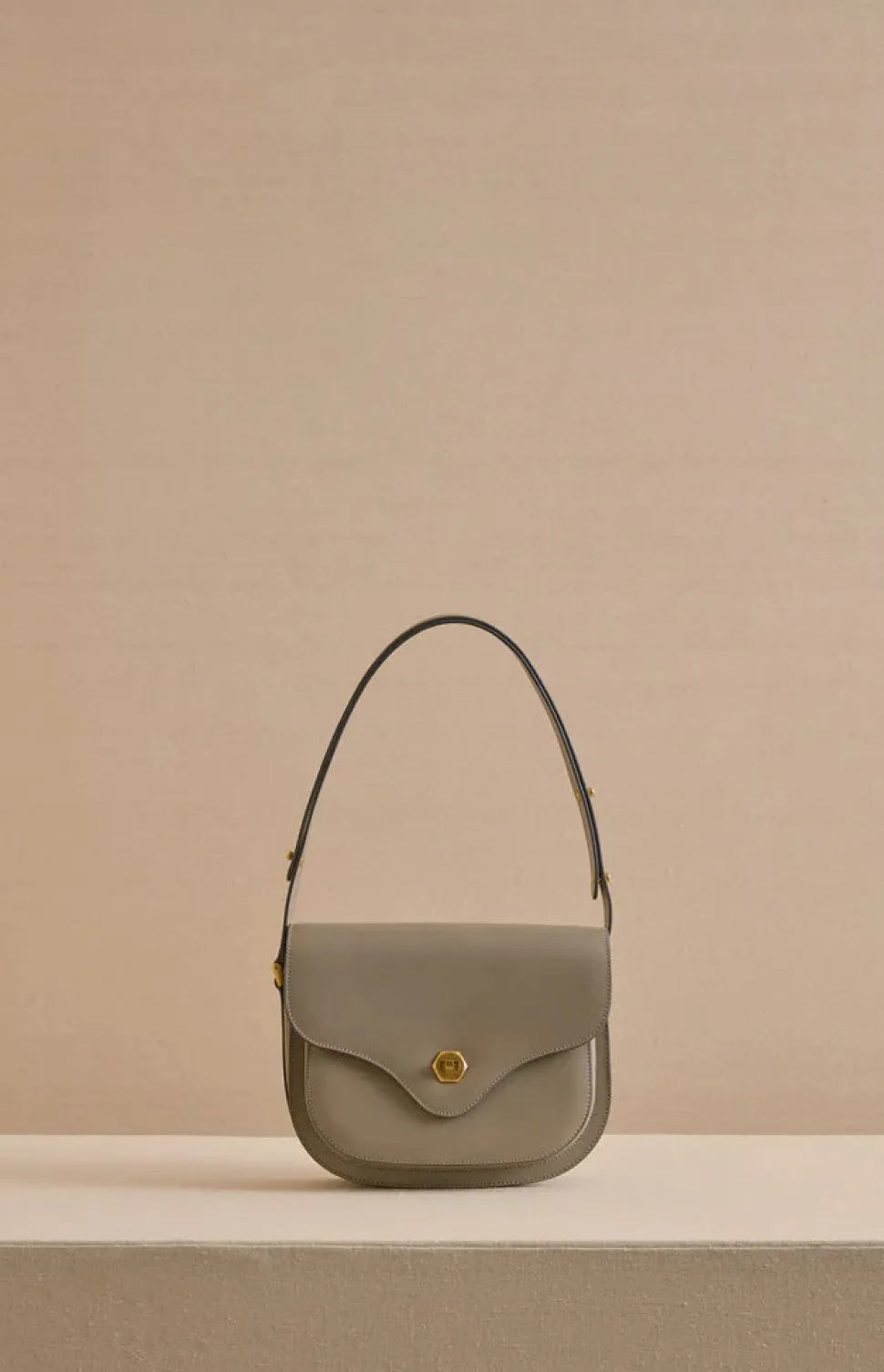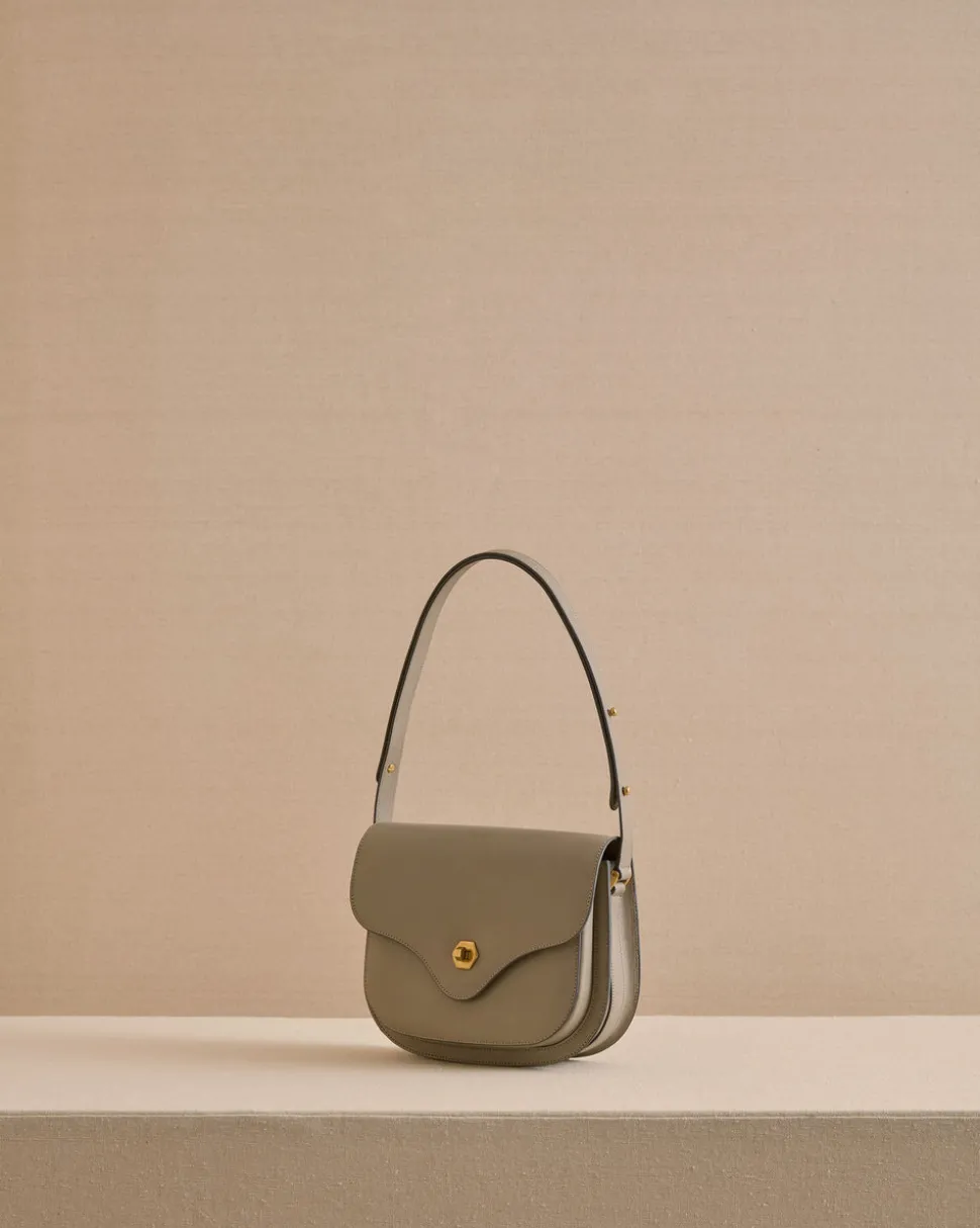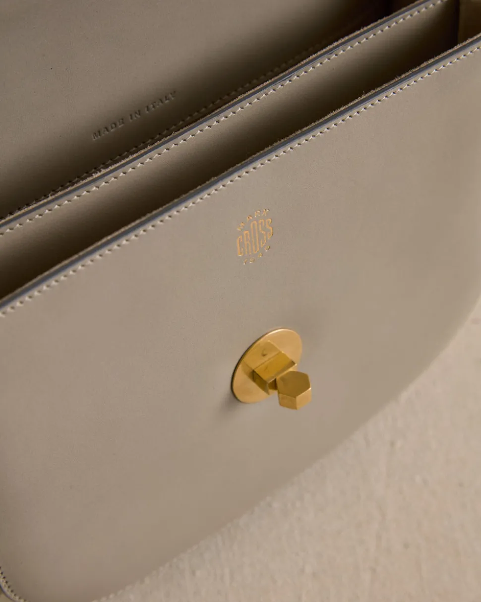 Founded in 1845 in Boston, Mark Cross is the quintessential American luxury brand with an uncompromising commitment to quality, elevated details, and nonchalant reworking of classic silhouettes. The signature shapes are discrete icons of pop culture, notably the overnight valise carried by Grace Kelly in Rear Window, designed by Gerald Murphy, the former president and ‘Lost Generation’ figurehead. A style pulled directly from the Mark Cross archives, the Jane has been kept true to her original form- with the exception of an updated clasp. Designed in soft vachetta leather with tonal stitching, the Jane in Vacchetta Mushroom will age and wear to a beautiful patina with use. Lined in a soft, creamy lambskin suede in natural beige, this bag is the ultimate in classic, easy, American luxury. Collar stud fastening on the shoulder strap allows for extension into a cross-body length, and a brushed brass hexagon front clasp is a further nod to the heritage of the brand.
