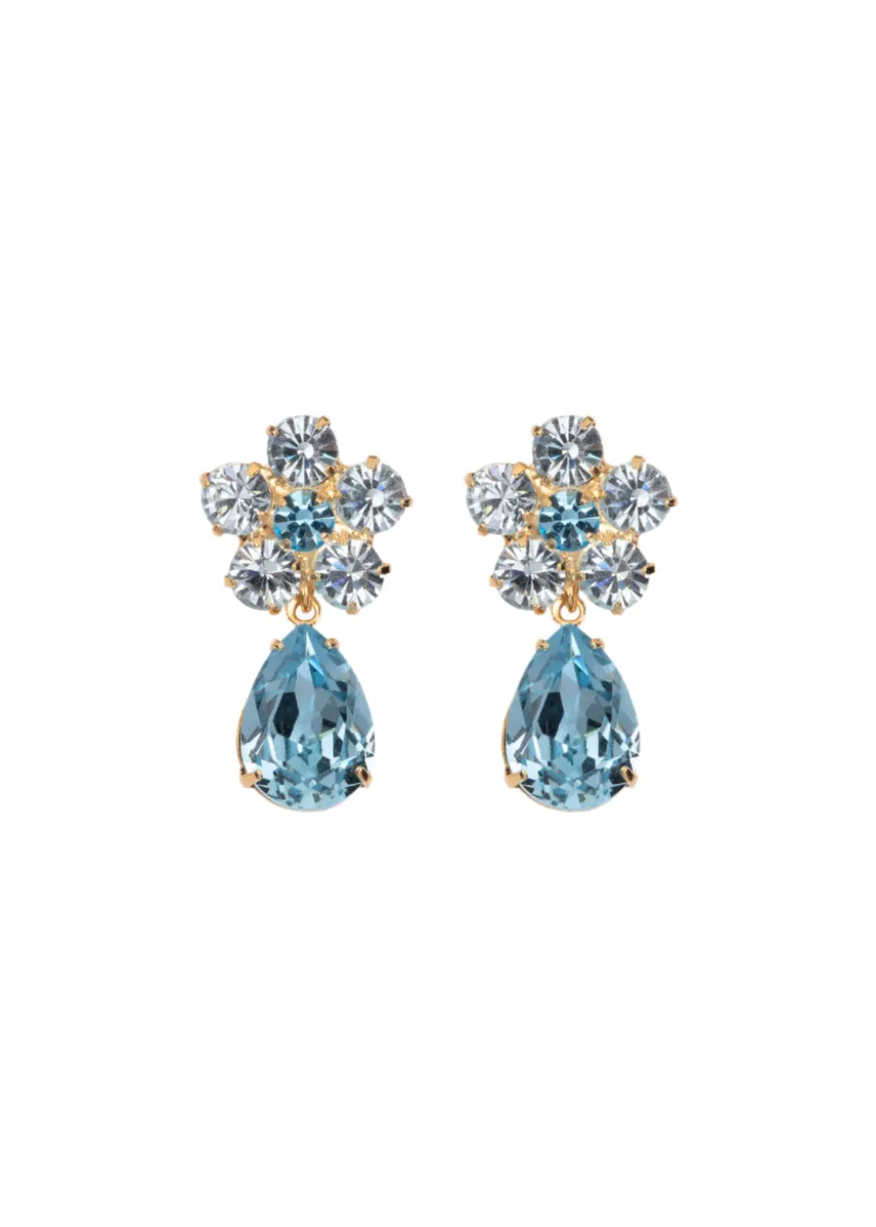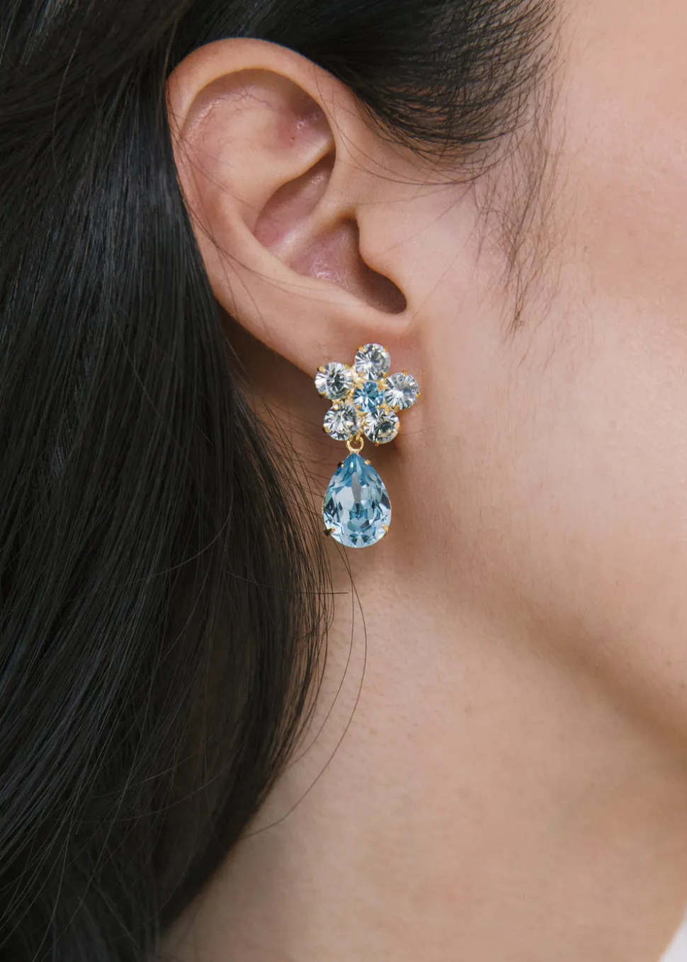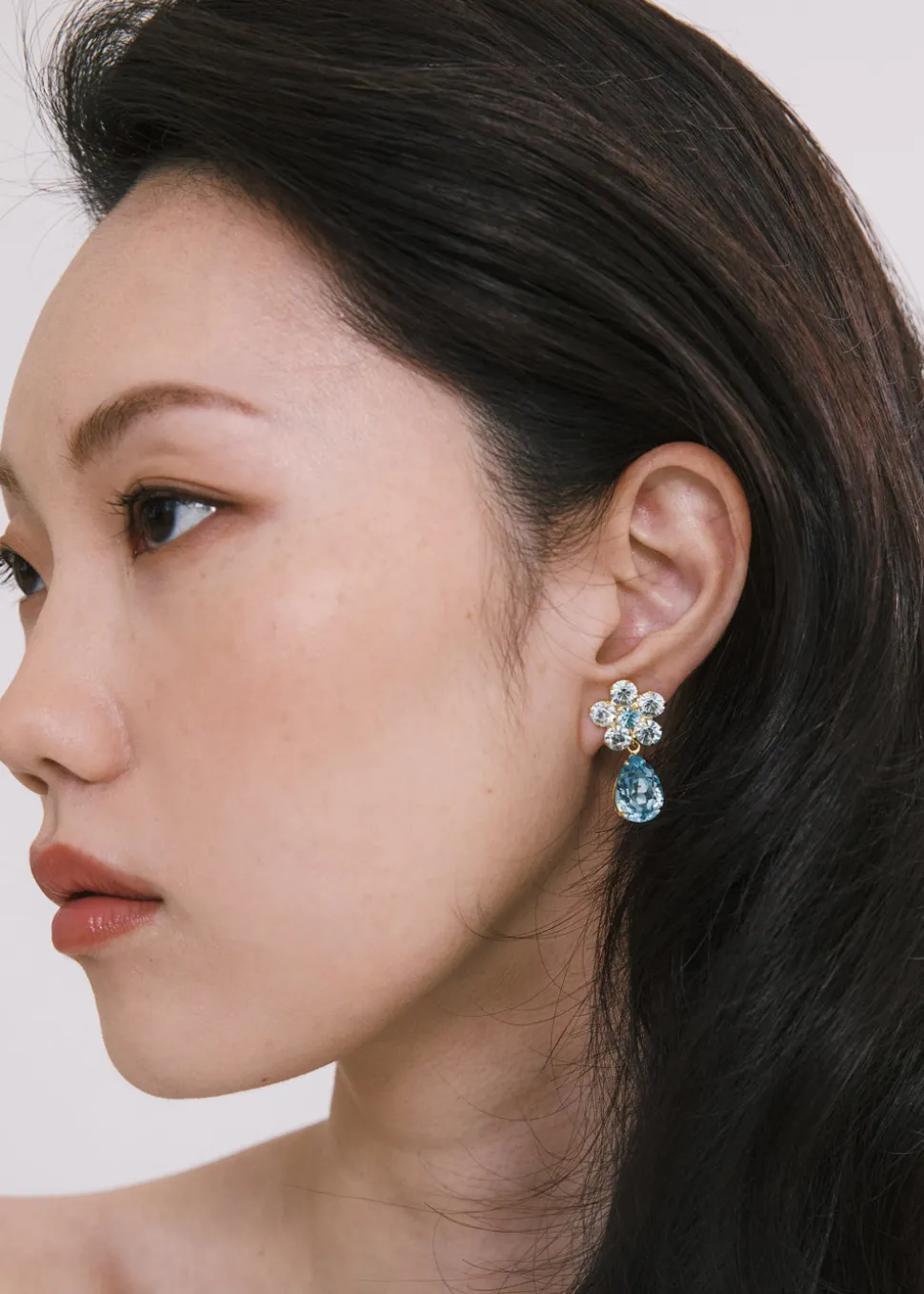 “Everything has a story to tell,” says Jennifer Behr, the founder of her namesake luxury hair accessory brand that has blossomed into one of New York City’s foremost ateliers for jewelry, as well as bridal. In every crystal, pearl, and ribbon, you’ll find the utmost quality and a sense of romance, as each piece reveals a modern interpretation of centuries-old regalia. A whimsical floral print in earring form, the Janna Earrings in Pool are an ebullient finishing touch. This endlessly wearable style features a crystal flower, with a larger pear-shaped crystal drop. With a glimmering effect, they are thoughtfully crafted to dazzle with your every turn.