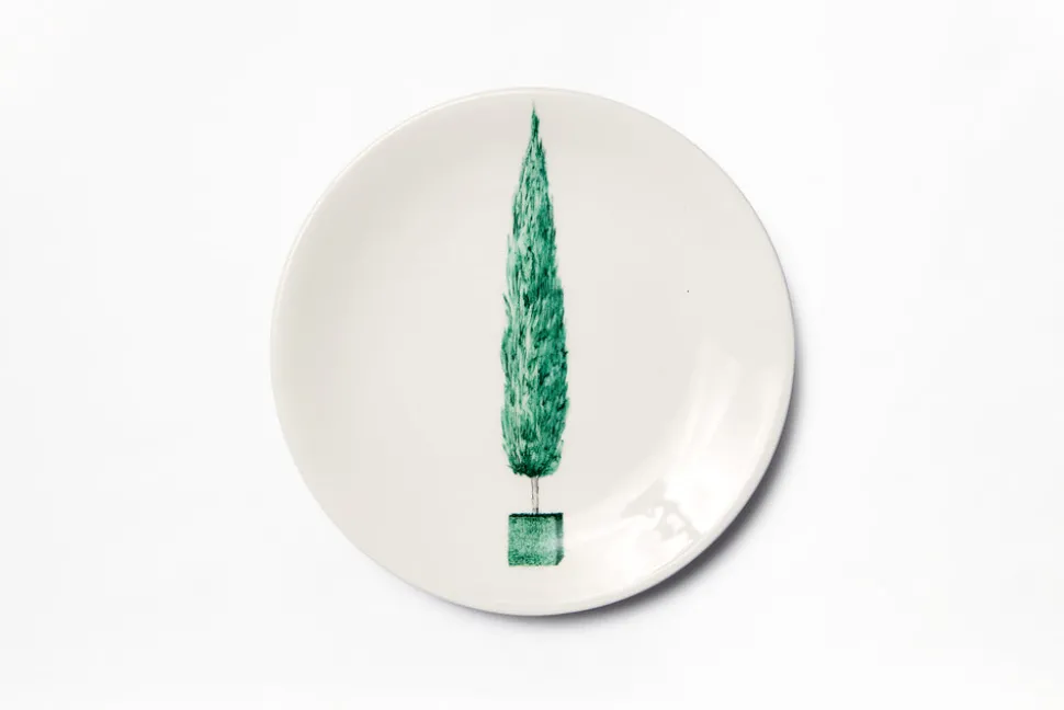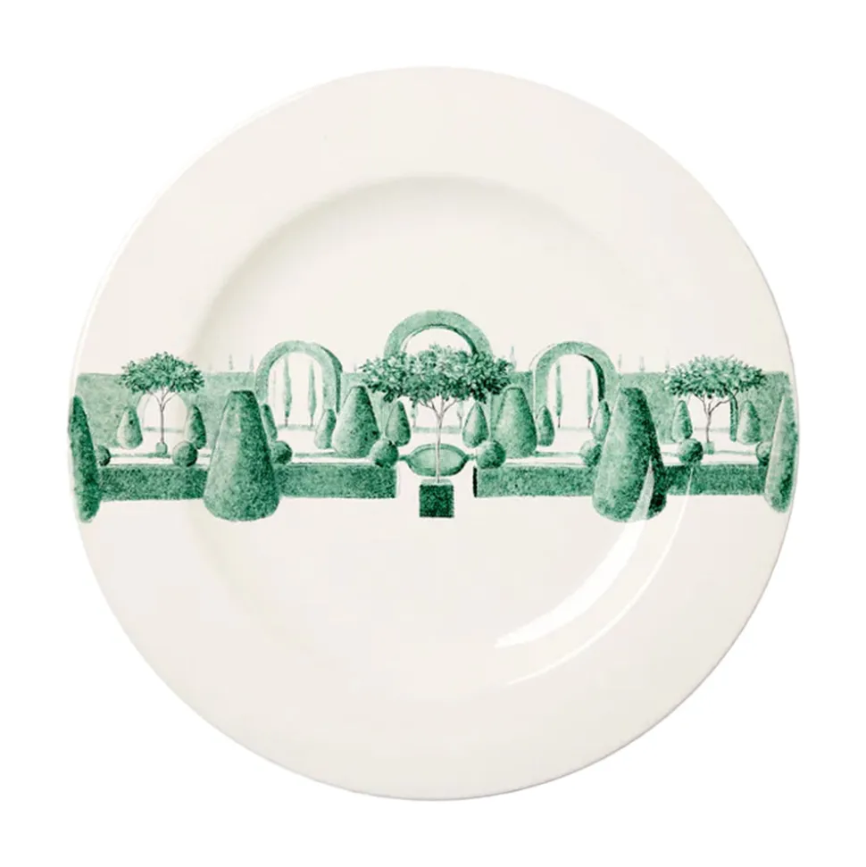 Founded by Costanza Paravicini, and taking inspiration from the classic tradition of fine Italian pottery, Laboratorio Paravicini seeks to create handmade tableware and plates as they were in long ago, but made today, for everyday use. Using a decoration technique called Gran Fuoco sulla Terraglia Bianca, the patterns under glaze emerge as uniquely bright and durable. The Jardin á L’Italienne Bread Plate 04 evokes a metaphysical atmosphere in which vegetation sheds its spontaneity to become architecture in a suspended, timeless landscape. Each piece is finished and decorated by hand.