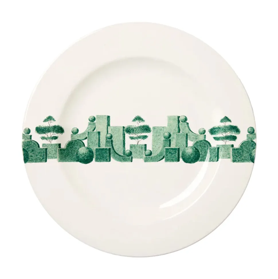 Founded by Costanza Paravicini, and taking inspiration from the classic tradition of fine Italian pottery, Laboratorio Paravicini seeks to create handmade tableware and plates as they were in long ago, but made today, for everyday use. Using a decoration technique called Gran Fuoco sulla Terraglia Bianca, the patterns under glaze emerge as uniquely bright and durable. The Jardin á L’Italienne Dinner Plate 01 evokes a metaphysical atmosphere in which vegetation sheds its spontaneity to become architecture in a suspended, timeless landscape. Each piece is finished and decorated by hand.