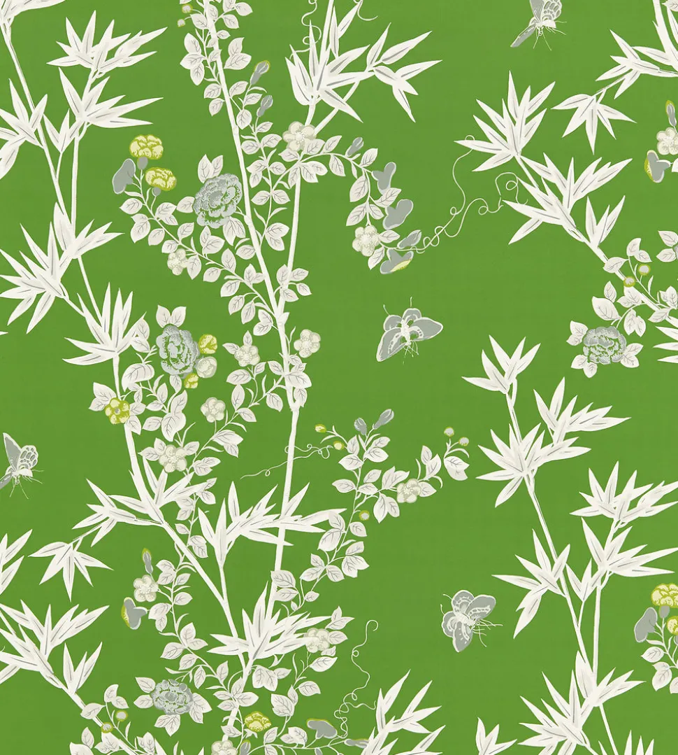 A destination for design connoisseurs since 1929, the House of Scalamandré is known for its commitment to the art and craftsmanship of its luxury fabric, wallcoverings, and furniture. Designs like the prancing zebras are recognized the world over for the integrity and quality of a brand in harmony with heritage and innovation. Inspired by paper discovered in Noble Hardee Mansion in Savannah, Georgia, this graceful chinoiserie print dates back to 1860. Grandly scaled bamboo foliage speaks to its adaptation from antique hand-painted Chinese silk wall panels, interpreted in a loose brushstroke style that is typical of more contemporary hand prints. Meanwhile, new color additions such as jade and ciel add a fresh look to this timeless design.