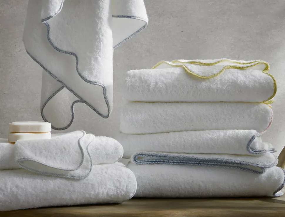 For nearly 100 years and three generations, Matouk has handcrafted luxury linens from the world’s finest materials. Their dedicated artisans in Fall River, Massachusetts are committed to creating the highest quality, most-loved bed, bath, and table linens for your home. The Jasper Bath Collection is a spirited ensemble featuring the signature Jasper pebbled print on white Cairo terry in a scalloped silhouette. Available in a selection of colors, Jasper’s subtle, contemporary pattern is an eye-catching look.