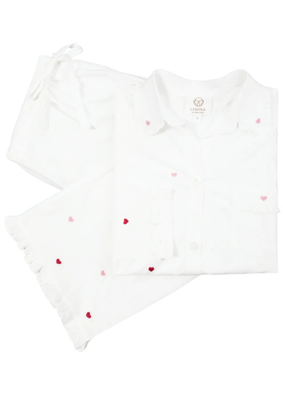 Timeless quality meets everyday living in Lenora’s ladies nightwear, travel accessories and baby clothes. Through their premium offerings, Lenora seeks to elevate every facet of a woman’s wardrobe, and their home. Crafted from unbelievably soft, woven cotton, and featuring hand-embroidered hearts, the Josie Hearts Pajama also feature a delicate ruffle on collar, sleeve, pocket and pants hem, for that final, feminine touch.