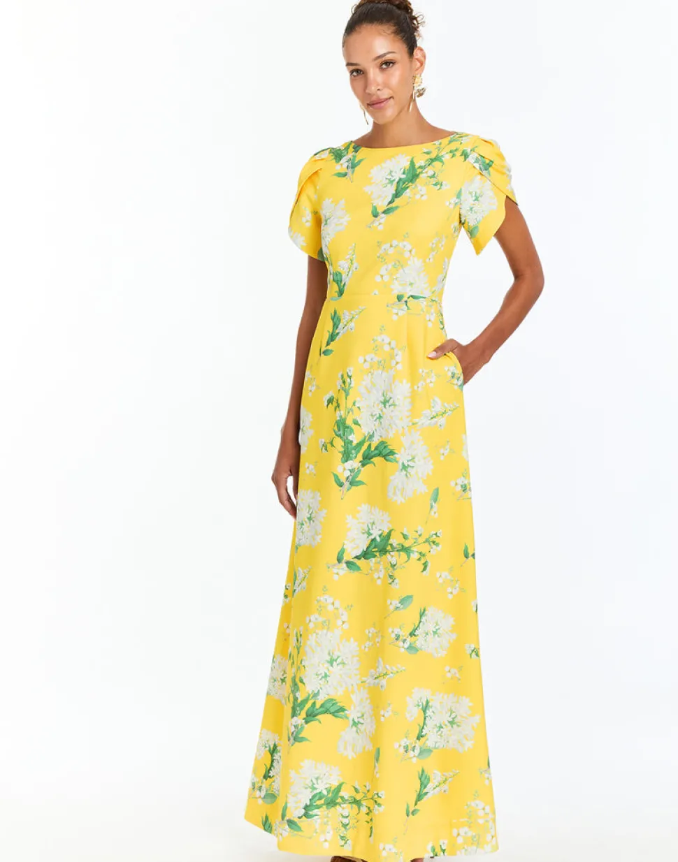Welcome to the enchanting world of Mestiza New York, where heritage meets haute couture. Founded by Alessandra Perez-Rubio & Louisa Rechter Takacs, this brand is a tribute to their shared Filipino roots and the timeless elegance of their foremothers. Each piece, crafted with the highest quality to stand the test of time, will add polish to your wardrobe, and a touch of magic, too. Boasting a sunny floral print, the Katherine Gown features an A-line silhouette and gorgeous tulip sleeves.