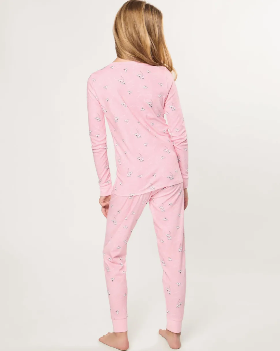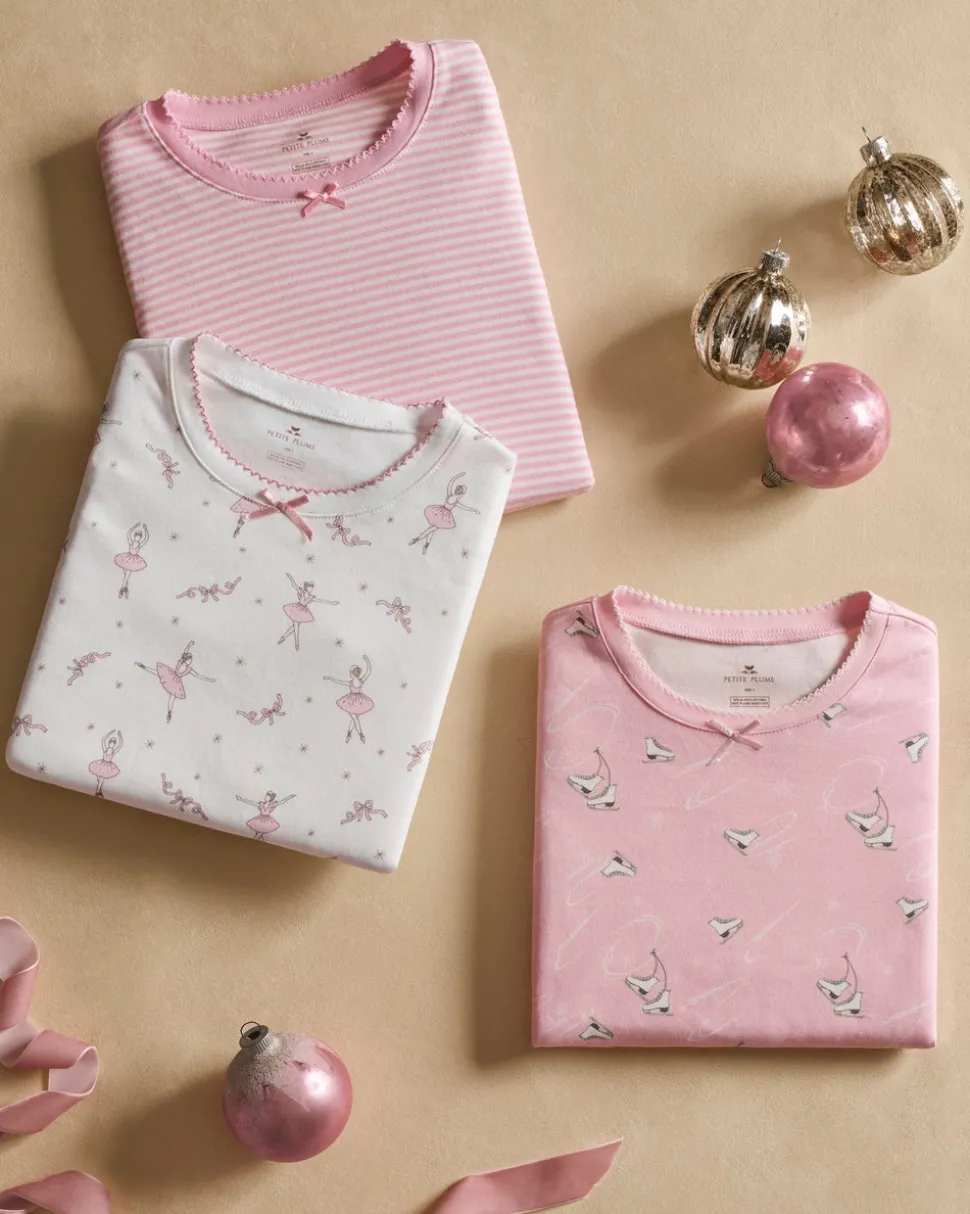 Petite Plume wishes you a “bonne nuit,” and in their luxury sleepwear, it’s hard not to oblige. The Kid’s Pima Snug Fit Pajama Set in Winter Skates brings a graceful new print to the season—sleek white skates set against a delicate pink background, ready for crisp afternoons of twirling and gliding across the rink. This long sleeve top and pant set ensures a secure, snug fit, allowing freedom of movement for active little ones while providing a classic silhouette for cooler months. Designed to coordinate with the full family collection, it offers superior comfort, durability, and timeless style points.