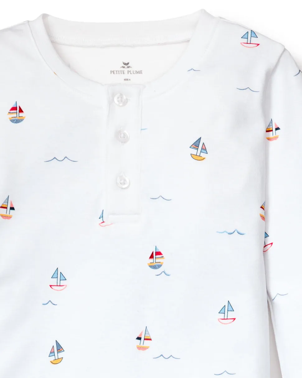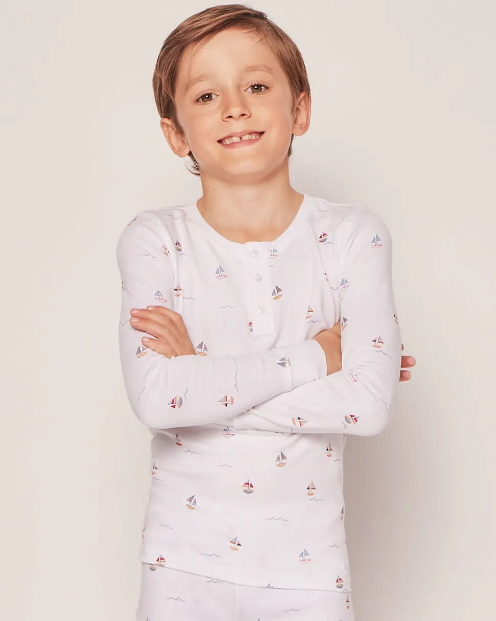 Petite Plume wishes you a “bonne nuit,” and in their luxury sleepwear, it’s hard not to oblige. Crafted in exquisite cotton, with the finest attention to detail, Petite Plume delivers the utmost comfort and sophistication. Set sail into a sea of dreams with the Bateau print. Chic sailboats glide across a tranquil sea of soft fabric, with gentle waves and a sprinkling of golden accents. The Pima Snug Fit Pajama Set is designed to ensure a secure and snug fit, allowing freedom of movement for active littles while providing a stylish silhouette for cooler months. This set offers superior comfort, durability with serious coordinated style points. The high-quality Pima Cotton retains its softness, shape, and vibrant colors even after multiple washes.