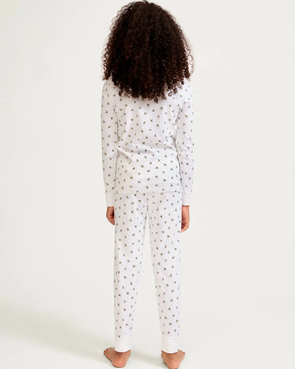Petite Plume wishes you a “bonne nuit,” and in their luxury sleepwear, it’s hard not to oblige. The Kid’s Pima Snug Fit Pajama Set in Mistletoe Moments captures holiday charm with hand-illustrated mistletoe leaves and berries scattered across a snowy white background—timeless yet whimsical, and just right for festive minimalists. This long sleeve top and pant set offers a secure, snug fit that allows freedom of movement for active little ones, while providing a cozy silhouette for cooler months. Designed to coordinate with the whole family, this set combines superior comfort, durability, and style.