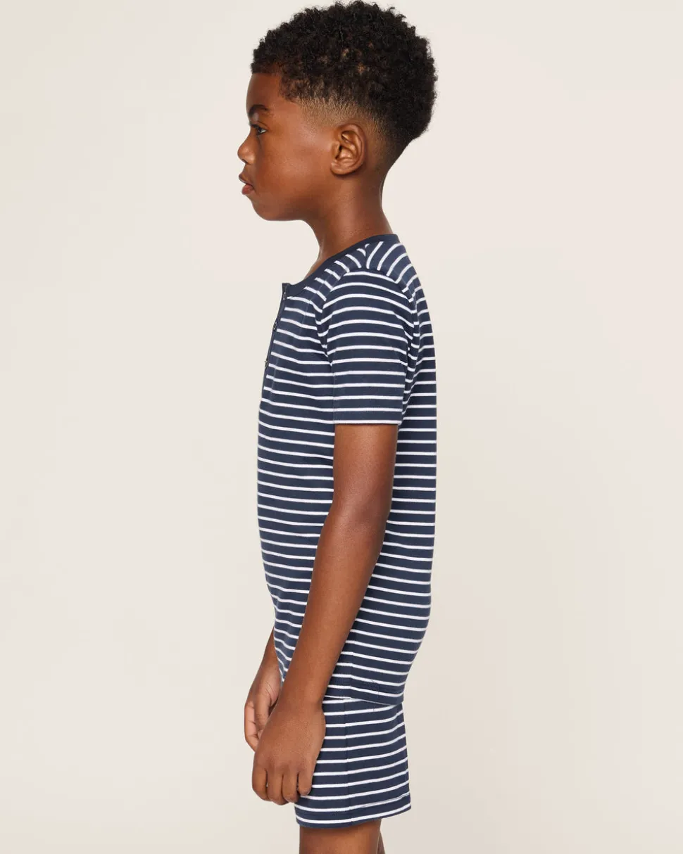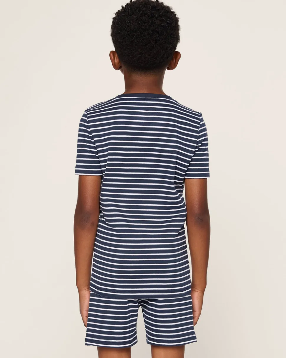 Petite Plume wishes you a “bonne nuit,” and in their luxury sleepwear, it’s hard not to oblige. Crafted in exquisite cotton, with the finest attention to detail, Petite Plume delivers the utmost comfort and sophistication. The Kid’s Snug Fit Pajama Short Set in Navy Stripe is designed to ensure a secure and snug fit, allowing freedom of movement for active littles while providing a stylish silhouette for cooler months. Made to coordinate with the whole family, this set offers superior comfort, durability with serious coordinated style points. The high-quality Pima Cotton retains its softness, shape, and vibrant colors even after multiple washes, ensuring it remains a favorite in your child’s wardrobe.