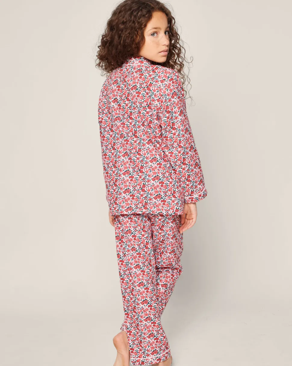 Petite Plume wishes you a “bonne nuit,” and in their luxury sleepwear, it’s hard not to oblige. Crafted in exquisite cotton, with the finest attention to detail, Petite Plume delivers the utmost comfort and sophistication. This romantic new interpretation of the beloved Fleurs de Rose print adds seasonal flair to a floral wonderland. Wintry blooms in rich reds and precious pinks make the Kid’s Twill Pajama Set in Fleurs des Bois is a dreamy addition to your sleepwear collection.