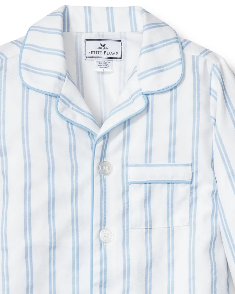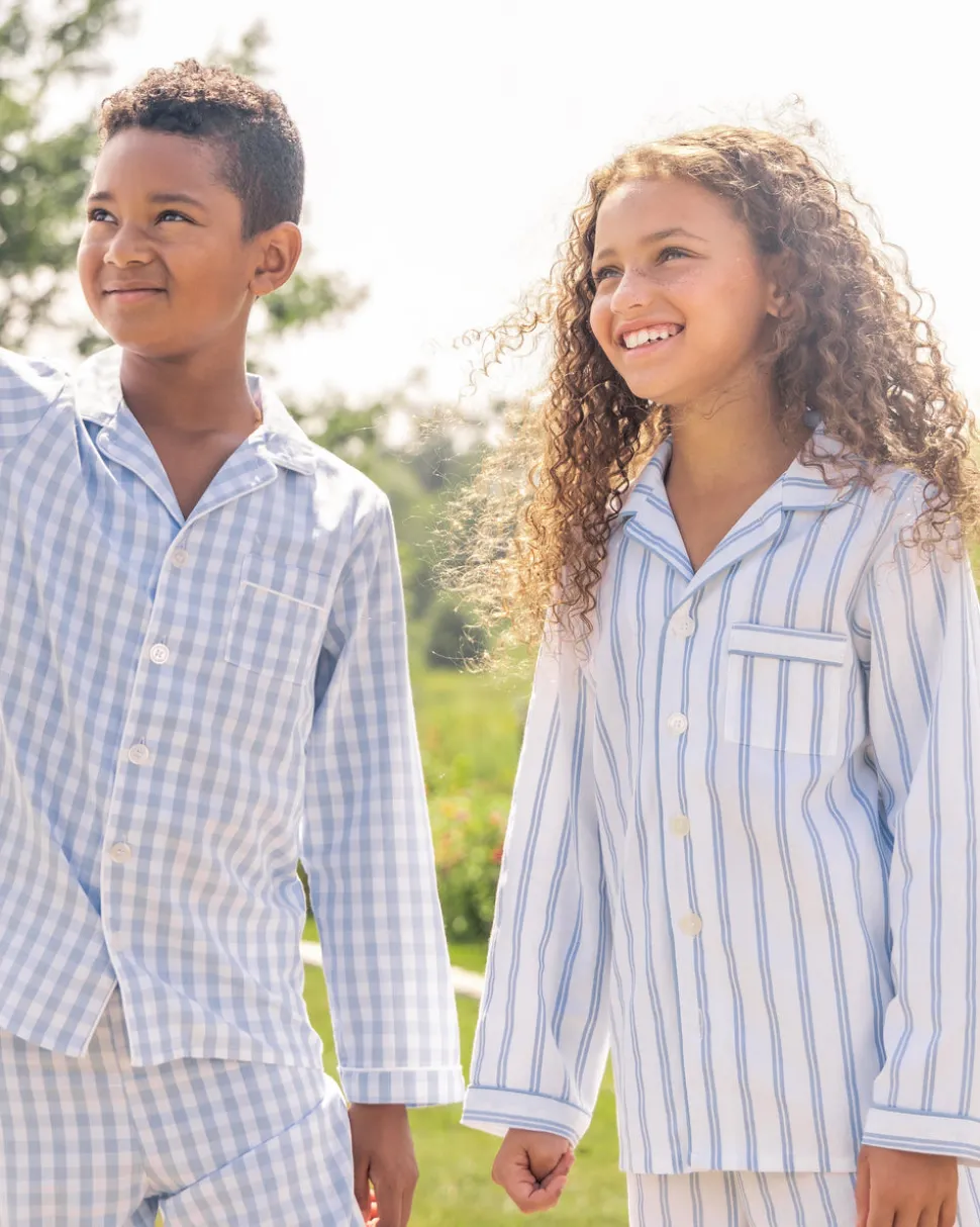 Petite Plume wishes you a “bonne nuit,” and in their luxury sleepwear, it’s hard not to oblige. Crafted in exquisite cotton, with the finest attention to detail, Petite Plume delivers the utmost comfort and sophistication. This classic pajama set is accented with contrast piping and finished with pearl buttons in the Periwinkle Stripe print.