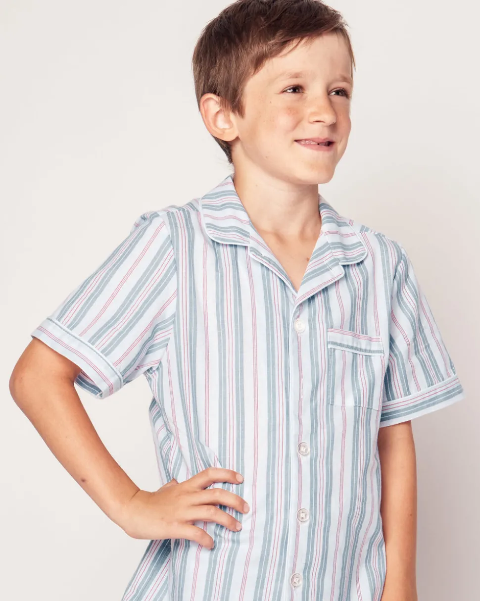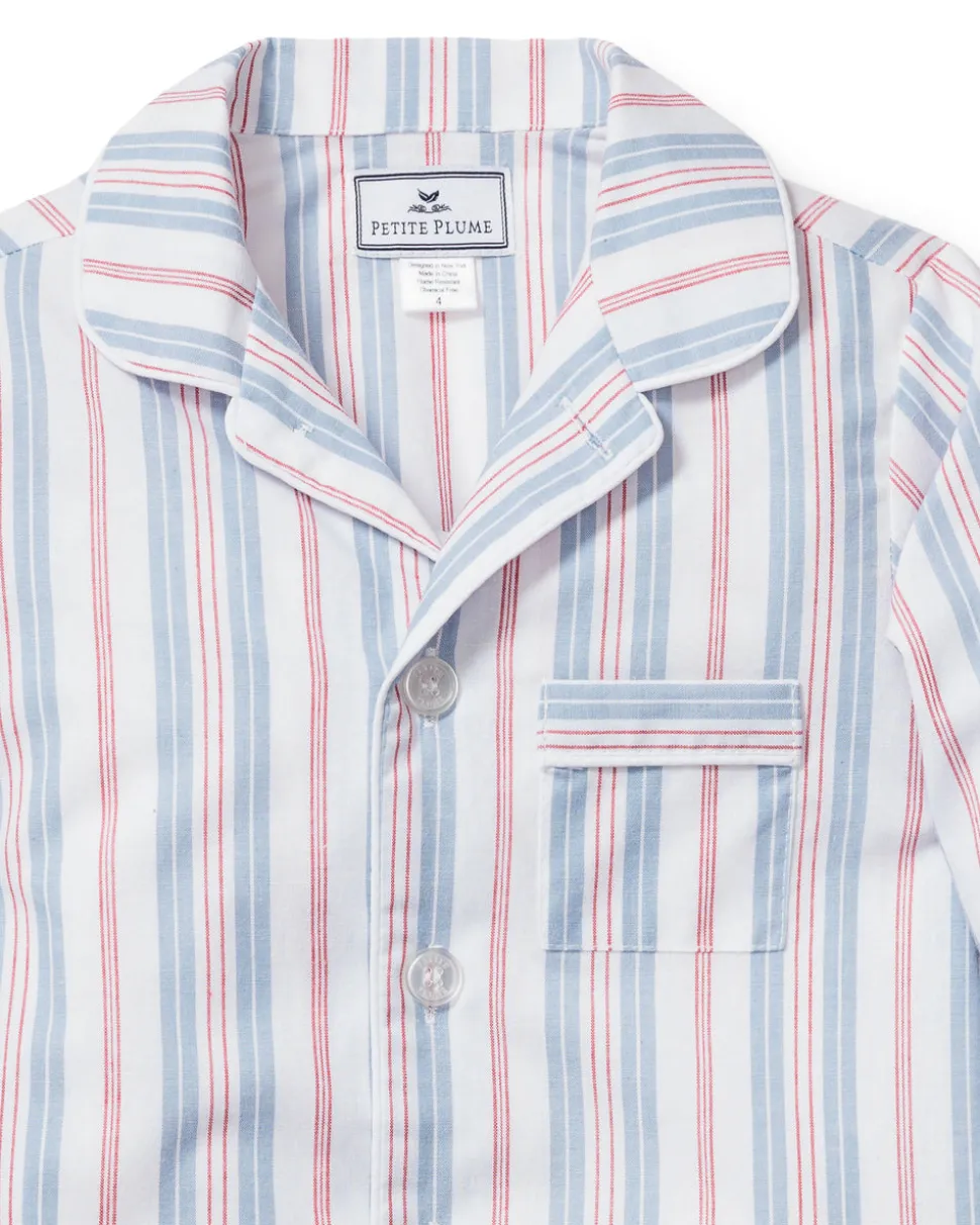 Petite Plume wishes you a “bonne nuit,” and in their luxury sleepwear, it’s hard not to oblige. Crafted in exquisite cotton, with the finest attention to detail, Petite Plume delivers the utmost comfort and sophistication. This classic pajama set is accented with contrast piping and finished with pearl buttons in the Vintage French Stripes print.
