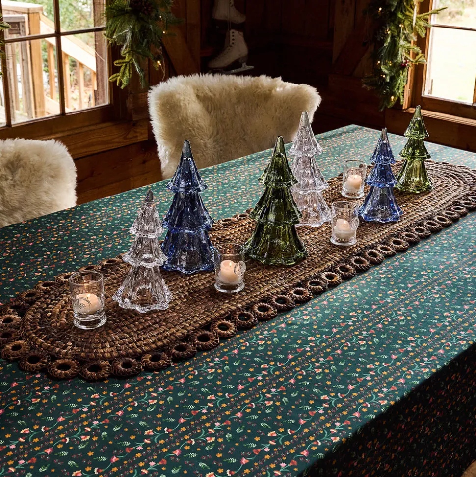 As newlyweds and self-proclaimed romantics, Capucine and David Gooding founded Juliska in 2001 with a small collection of mouth-blown glasses. Today, it’s the tableware and home brand every good hostess needs to know. The Klara 60″ x 120″ Tablecloth in Evergreen draws inspiration from the charm of Alpine chalets, featuring colorful mountain wildflowers set against a deep green background. Cozy yet refined, it adds warmth and elegance to seasonal celebrations and everyday dining alike.