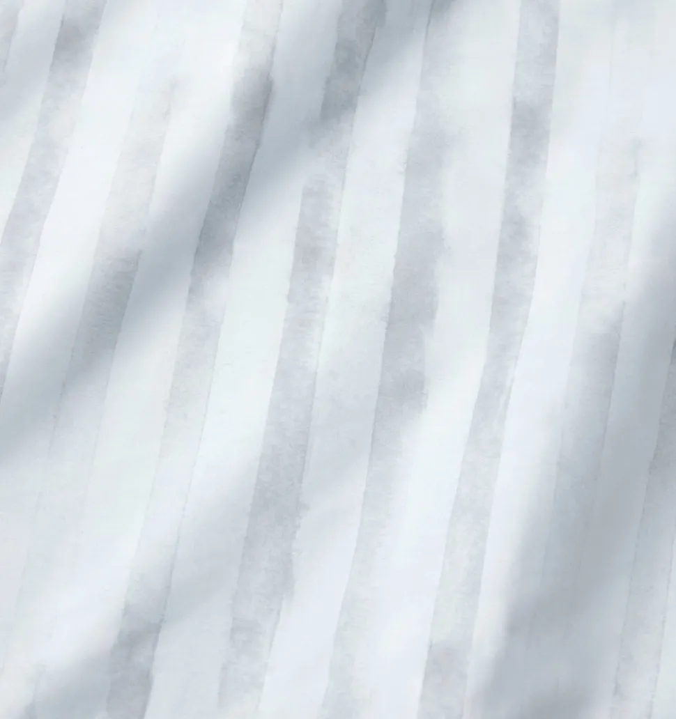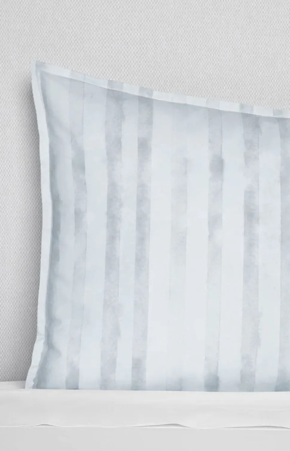 Renowned for their signature Italian craftsmanship, Sferra linens are famous for their quality, and lauded for their elegance, the world over. The Kricia Sham in Lunar features an all-over watercolor stripe printed on Italian-woven percale, evoking the breezy beauty of sun-washed cabana textiles. Presented in soft blue-gray tones with painterly fluidity and finished with mini flanges, it adds a serene, artful touch to the bed.