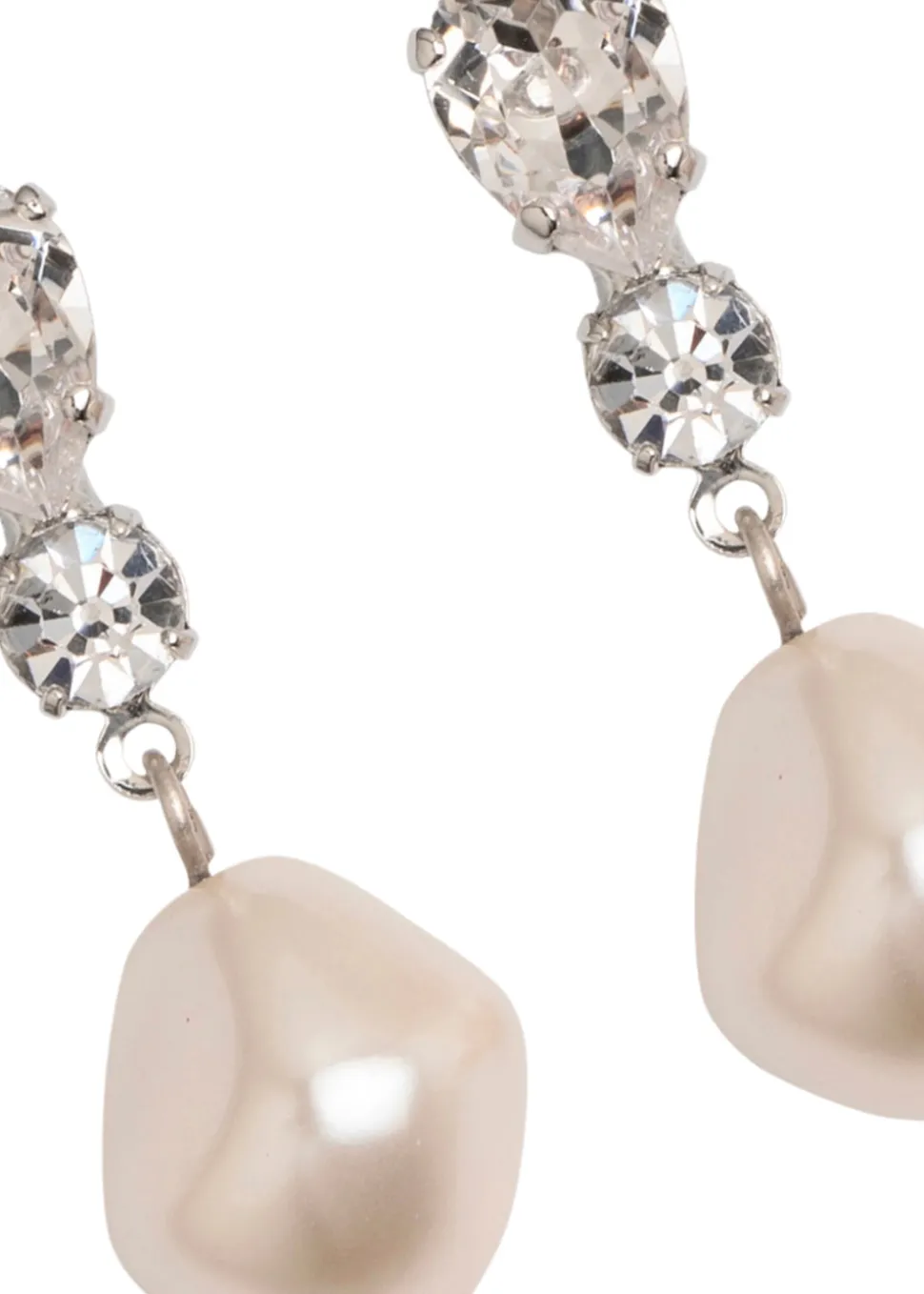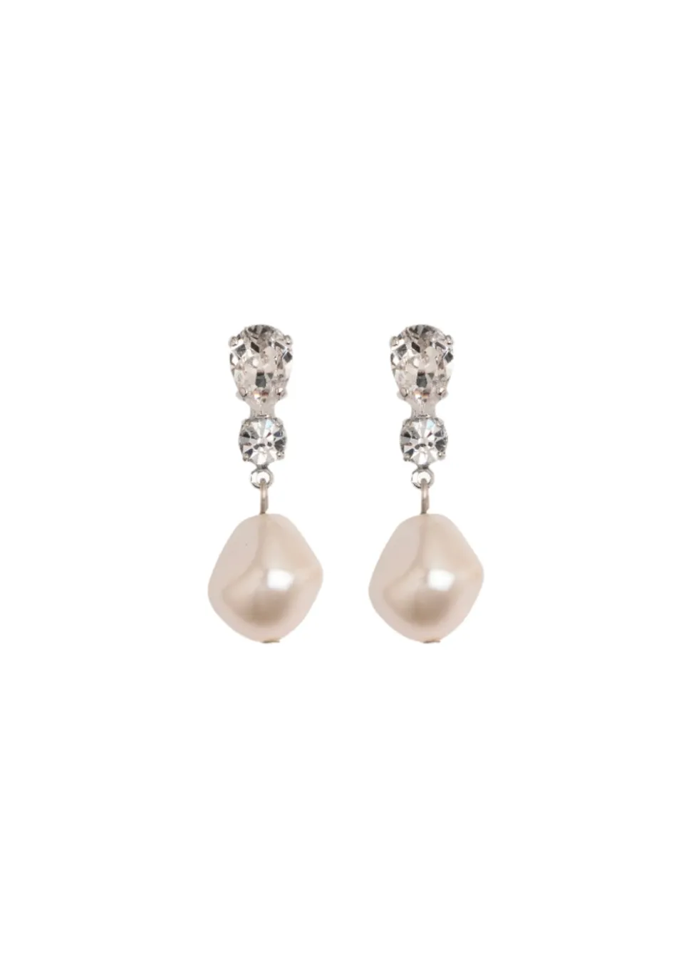 18K gold or rhodium plated brass. Crystals. Poly baroque pearls. Surgical-steel posts. Nickel-free and safe for sensitive skin. Handmade in New York.