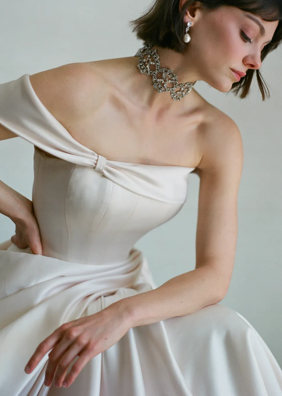 “Everything has a story to tell,” says Jennifer Behr, the founder of her namesake luxury hair accessory brand that has blossomed into one of New York City’s foremost ateliers for jewelry, as well as bridal. In every crystal, pearl, and ribbon, you’ll find the utmost quality and a sense of romance, as each piece reveals a modern interpretation of centuries-old regalia. The Kristina Earrings in Crystal are a modern drop earring seeped in classic style. A cluster of pear-shaped and round crystals forms a geometric motif. The baroque-style crystal pearls swing like glowing orbs, complementing the crystals’ twinkle.