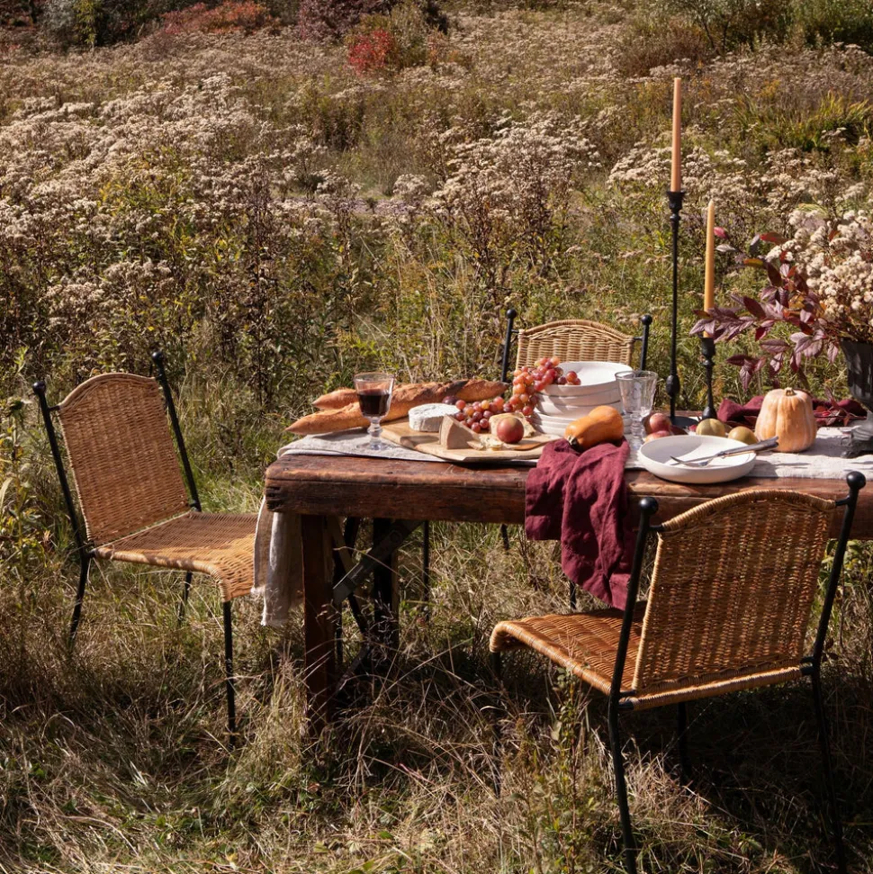 At once beautiful and timeless, Woven designs mindfully designed pieces for your home and beyond. Woven invites you to create spaces that are layered and natural—an expression of you. Inspired by the rich tradition of wickerwork found in Provence, the Lacoste Indoor & Outdoor Wicker Dining Chair evokes an old world elegance. Masterfully crafted from sustainably sourced rattan and hand hammered wrought iron, this vintage inspired, stackable dining chair easily transitions from everyday kitchen nooks to refined dining rooms, and from indoors to out. For outdoor use we recommend protective covers and storage in inclement weather.