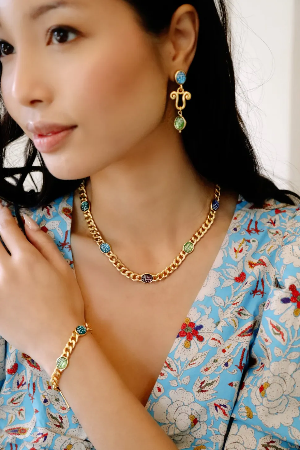 The mother-daughter duo behind Brinker + Eliza combine their experience in metalsmithing and fashion to create incredibly unique jewelry that feels custom-made. Employing pearls, shells, and earth’s most prized organic forms, these are pieces to be not just worn but treasured. Made for a little layering, the Ladybird Necklace boasts oval carved glass ladybug cabochons set on 24k antique gold plated curb chain.