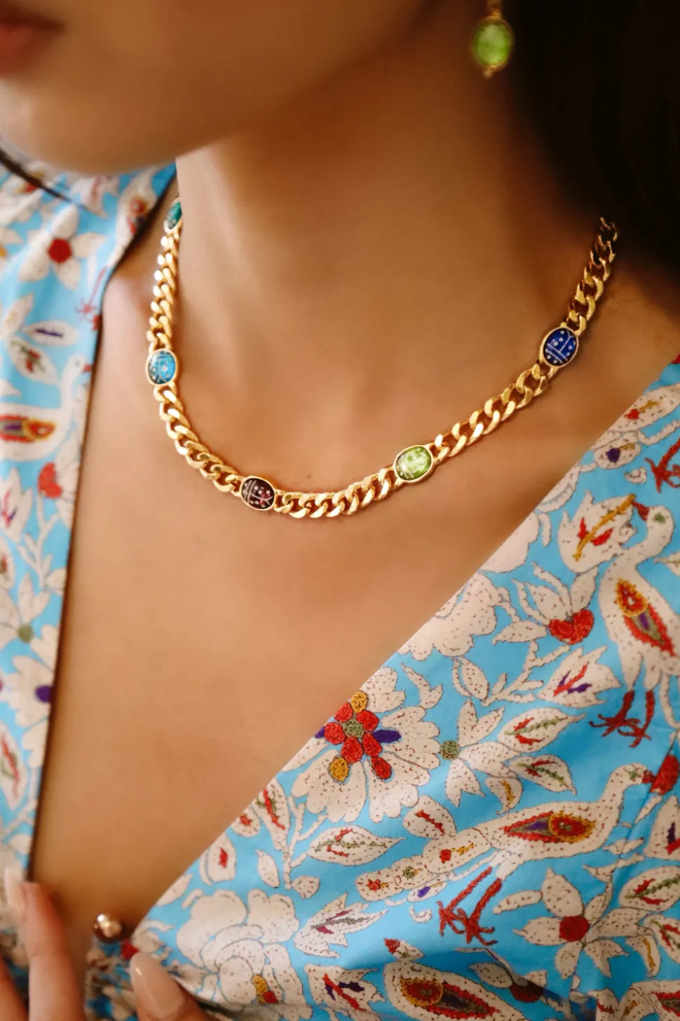 24K antique gold plated curb chain. Adjustable. Hook closure.