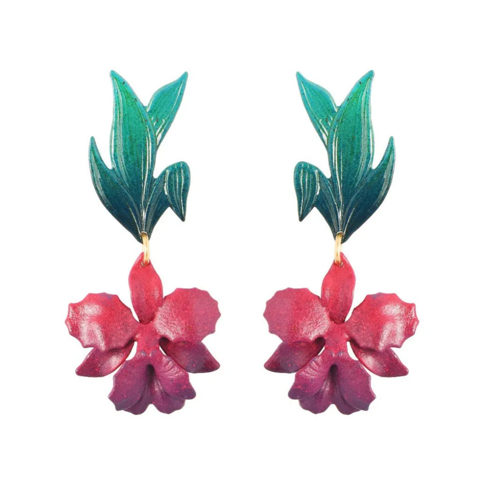 Founded in 2002 by designer Jade Gedeon, We Dream In Colour is powered by a team of women at their North Shore studio in Boston. Each piece of jewelry is assembled by hand, and the company works hard to operate in a socially conscious fashion every step of the way while creating their whimsical, elegant designs. The Laelia Orchid Earrings feature carefully crafted brass blooms that are layered with hand-painted washes of pigment to complete this lush, tropical pair.