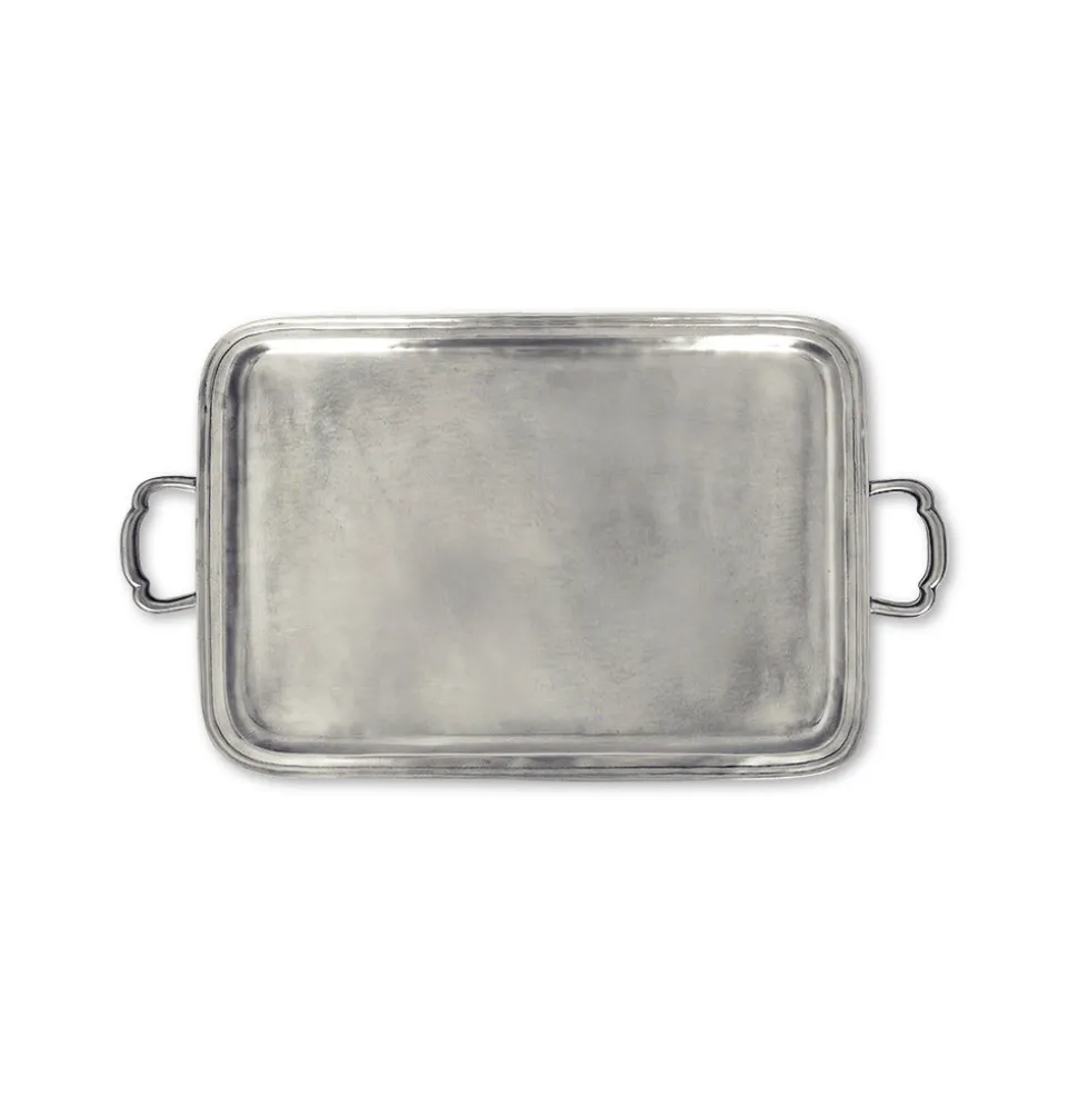 Whether for the presentation of cheese, crudités, or after-dinner coffee, the Lago Rectangle Tray with Handles, is a sophisticated serving piece to your latest dinner party. A must-have for the ultimate hostess, MATCH pewter—a valuable metal composed of tin, copper, and antimony—is handmade by artisans in Northern Italy. Its classic look complements both traditional and modern place settings and recalls decadent celebrations of the past (talk about heirloom-worthy!) Everything is made with an alloy that is food-safe, lead-free, FDA-approved, and requires very little care—and each piece is marked with the manufacturer’s signature “M.” No matter what you’re serving, MATCH’s carefully considered details make the meal.