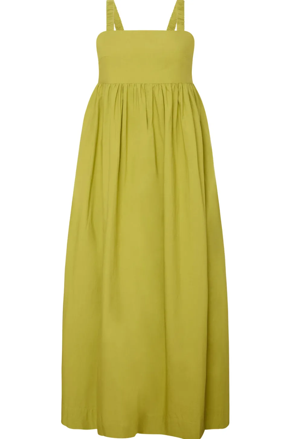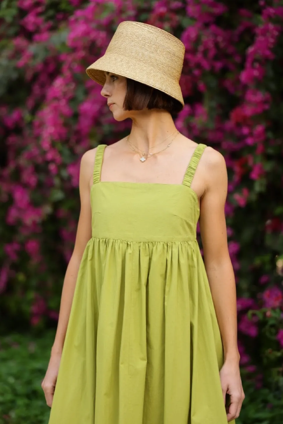 Introducing Maison Marigold, a new luxurious small-batch women’s resortwear brand inspired the wanderlust of travel. Our collections effortlessly transition from beachside lounging to an elegant evening on the town. The simplicity of design and classic silhouettes are the foundations for each and every style. Hand-printed linen and cotton make for comfortable and effortless pieces that are both feminine and flattering. The Laguna Sun Dress in Sweet Lime was designed as a classic no-fuss sundress. The empire waist and low back makes this timeless silhouette feminine and chic. It features a face-framing square neckline, elastic straps and hidden side seam pockets. The Laguna Sun Dress is crafted from crisp cotton poplin that’s airy and light with just the right amount of structure. Wear it casually with sneakers to the market or dress it up with your favorite sandals.