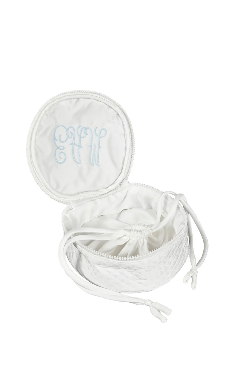 If you are like us, you’re a girl that likes options. This Jewelry Round allows you to pack all of your jewels without taking up too much space in your bag. Add a monogram for a personalized touch.