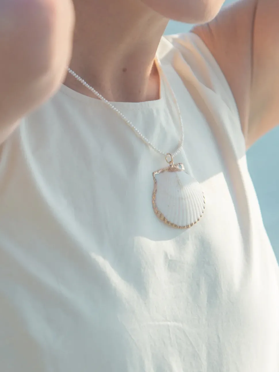 From Newport, Rhode Island, designer Kerry McGauley uses her experience in the fashion industry and inspiration from the town’s picturesque shoreline to craft singular yet timeless pieces—shining at the most memorable events and through your everyday. The Large Scallop Shell Charm in White is a coastal treasure, featuring a naturally occurring shell dipped in luminous gold plating. Sold as a single charm, it’s a striking symbol of seaside elegance.