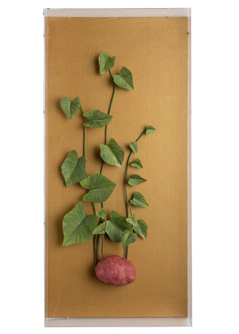 A former art restorer, Tommy Mitchell began creating his line of floral-inspired art installations for private clients, which led to his line of homewares. Working with a combination of copper, steel, paint, and gold leaf, and a dedicated team of artisans from his North Carolina studio, his hand-made, signed works are renowned for their artistic quality and singular beauty. Embracing both the classic and the contemporary, the Large Vegetable Study Potato On Gilded Linen makes an incredibly beautiful statement, on its own, or when paired with others in the artist’s Large Fruit and Large Vegetable series.