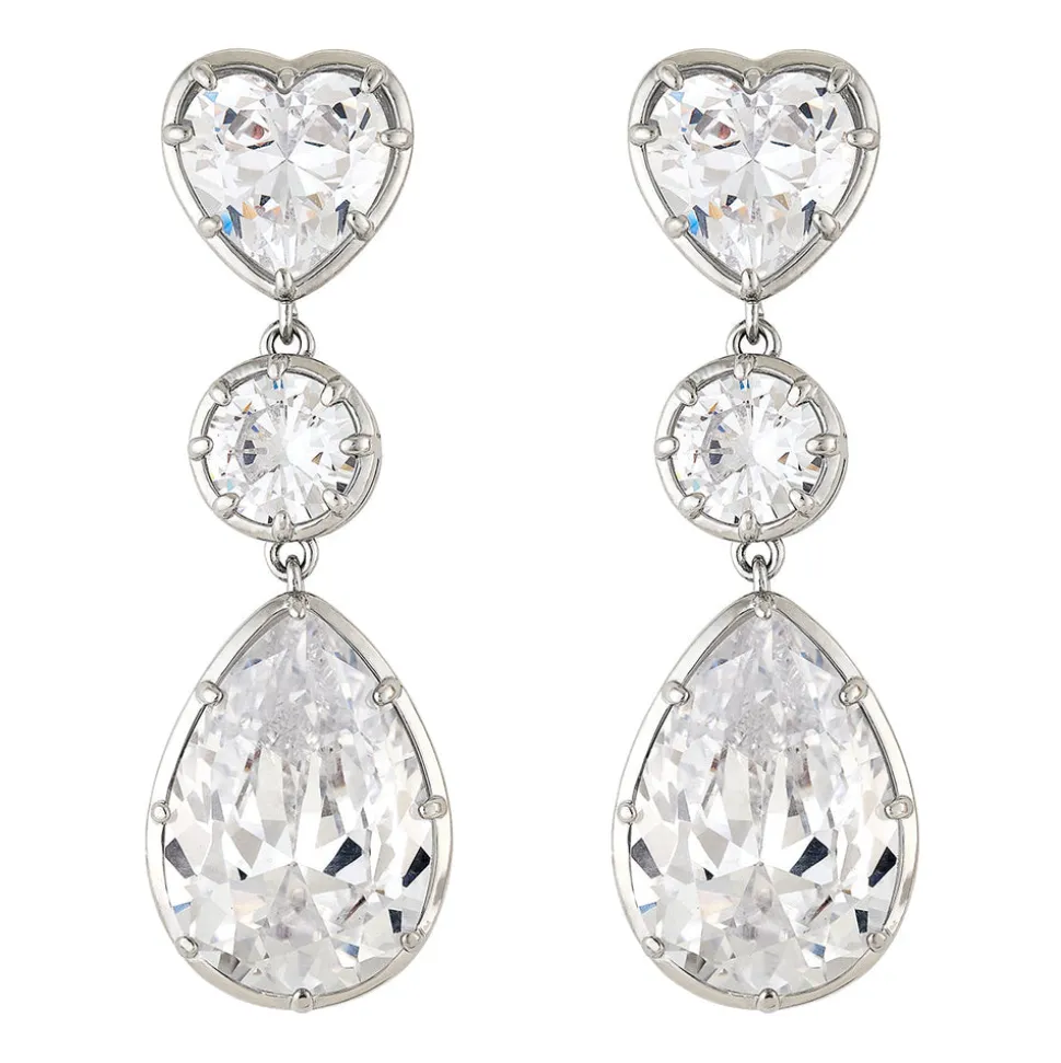 Inspired by art, architecture and the founder’s global journeys, ASHA by Ashley McCormick introduces bold, sophisticated jewelry, clothing, and accessories made from only the finest materials. From everyday glamour to the red carpet, these statement pieces are as eye-catching as they are classic. The Lauren Earring features a heart-shaped post with an elegant circle and pear-shaped drop. Cubic zirconia are embedded in white rhodium.