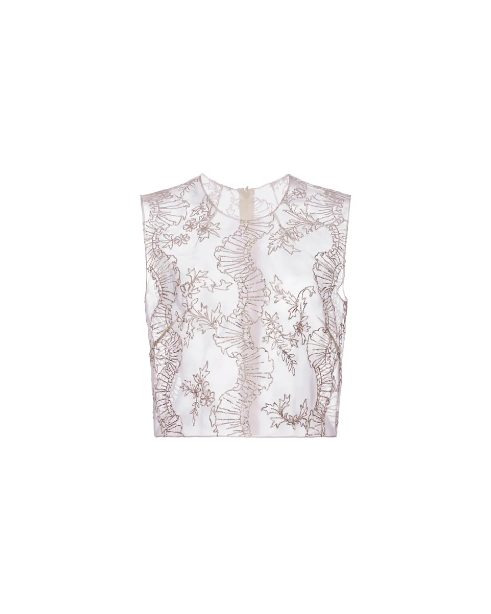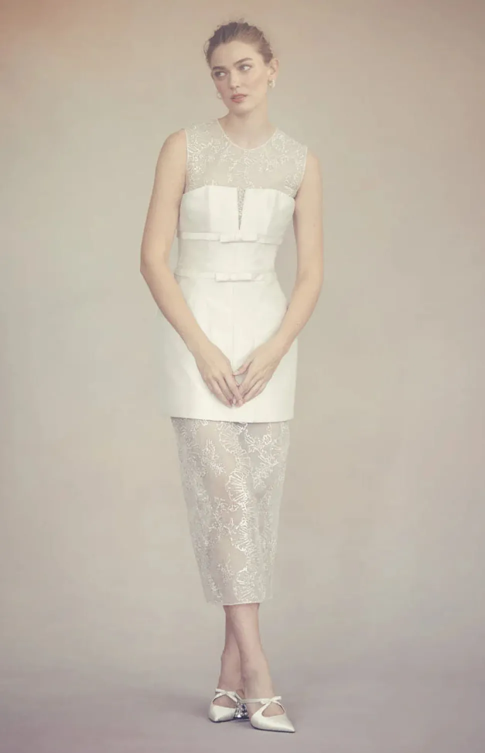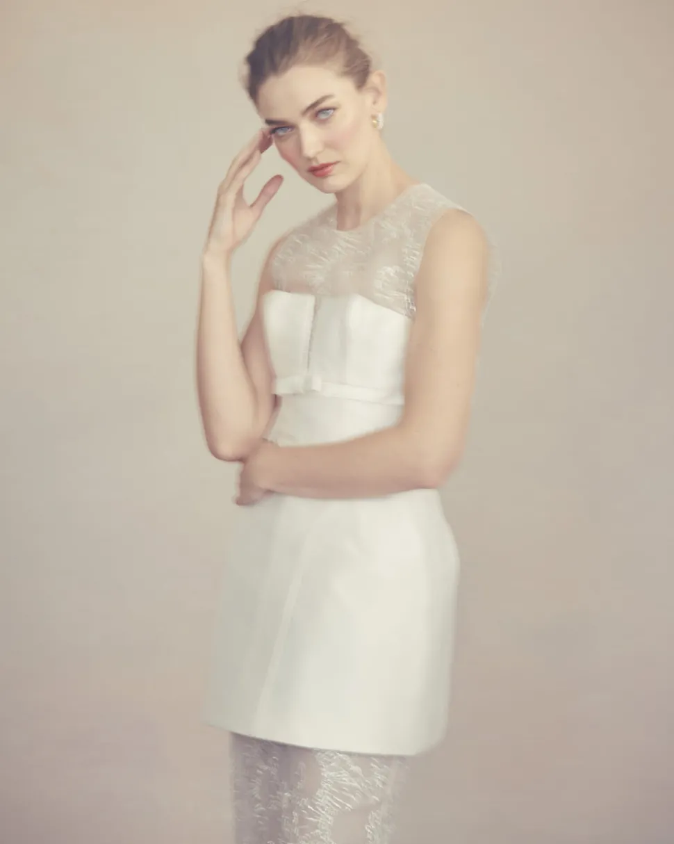 A graduate of the Savannah College of Design, award-winning Alexandra Pijut’s namesake line arrives from her studio in New York, offering luxe ready-to-wear pieces that distinguish themselves between femininity and practicality. The Laurence Top is crafted in ivory silk organza and features trompe l’oeil ribbon embroidery inspired by the Rococo era. This minimalist silhouette features neck and bust darts for a flawless fit.