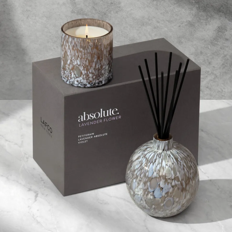 LAFCO (Luxury Articles and Fragrance Company) New York transforms everyday moments into powerful sensory journeys. Established in 1992 by world-renowned nose Jon Bresler, LAFCO transports his passion for the European tradition of botanical based fragrances to specialty candles, home goods, and uniquely formulated personal care products. The Lavender Flower Absolute Diffuser balances potent herbal lavender with the freshness of mint leaves and bright citrus. An infusion of aromatic rosemary and violet petals are enhanced by a sweet touch of vanilla. Housed in hand-blown Macchia glass, the Absolute collection is a true work of art.