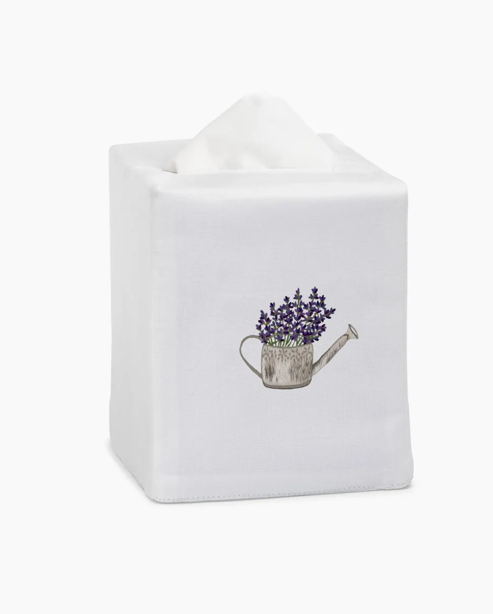 Founded in 2012, Henry Handwork brings joy to the everyday with handmade textiles for the home. Placing tradition and quality at the forefront, the brand resurrects the fading craft of hand-embroidery and needlework, embracing the heritage of finely-wrought European linens. The Lavender Watering Can Tissue Box Cover features a delicately hand-embroidered watering can filled with lavender blooms, bringing a touch of garden-inspired elegance to your home décor.