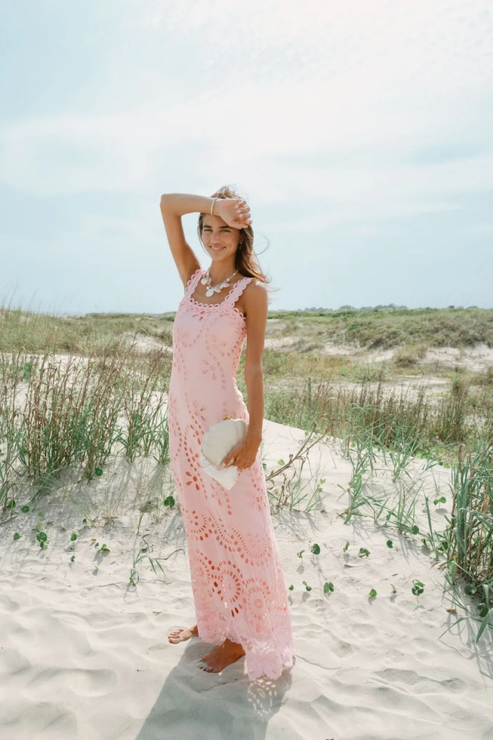 Every WAIMARI piece has a story. Started by two Colombian sisters, the brand is passionate about what goes into their resort wear, embracing the traditions of the local craftspeople they employ and focusing on both the sustainability and quality of their investment pieces. Exclusive to Over The Moon, the Le Bouquet Maxi Dress in Pink is crafted from intricate eyelet fabric in a romantic silhouette. Designed with a touch of graceful femininity in mind, this floor-skimming style is a statement of elegance for warm-weather occasions.
