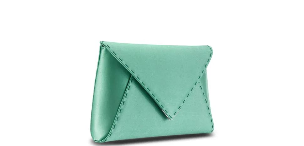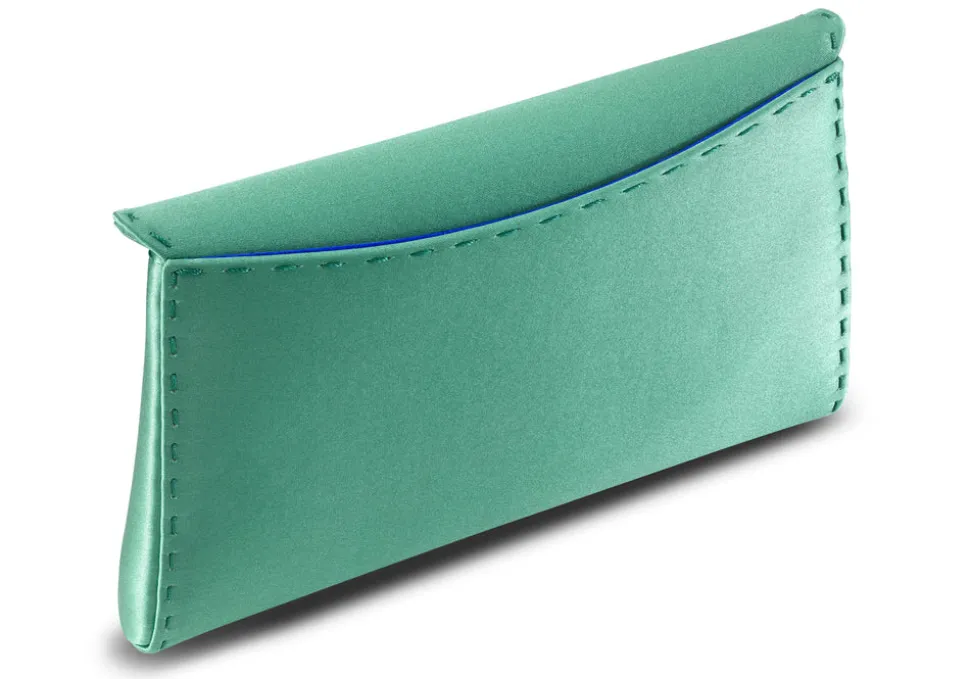 Launched in 2011, Tyler Ellis’s namesake luxury handbag line quickly became a favorite on red carpets in Hollywood and around the world. With fashion in her DNA (Ellis is the daughter of famed fashion designer Perry Ellis), the highest standards of craftsmanship, originality, and functionality resonate in each and every piece. The brand’s signature envelope clutch, the Lee Pouchet Small in Mint Satin features a magnetic snap closure, a hidden exterior pocket, an optional cross-body chain, as well as their signature Thayer blue lining. The Lee fits a large iPhone, of course.