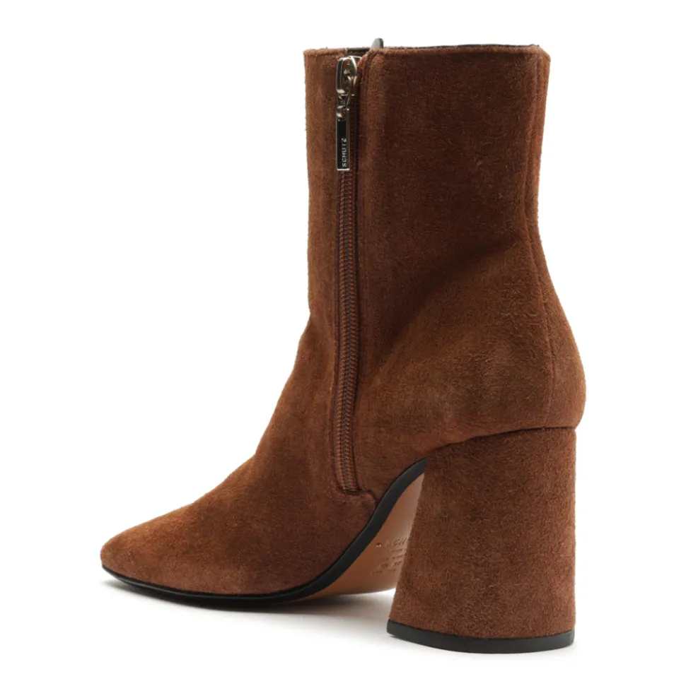 Founded in 1995 by Alexandre Birman, Schutz redefines attainable luxury with its stylish footwear. With each new release, the brand delivers of-the-moment collections, defined by confident, bold, designs around which entire outfits can be built. The Leia Suede Bootie in Pecan Brown is sleek from every angle, featuring a strong heel and square toe that create a clean, commanding silhouette designed to anchor any look with modern edge.