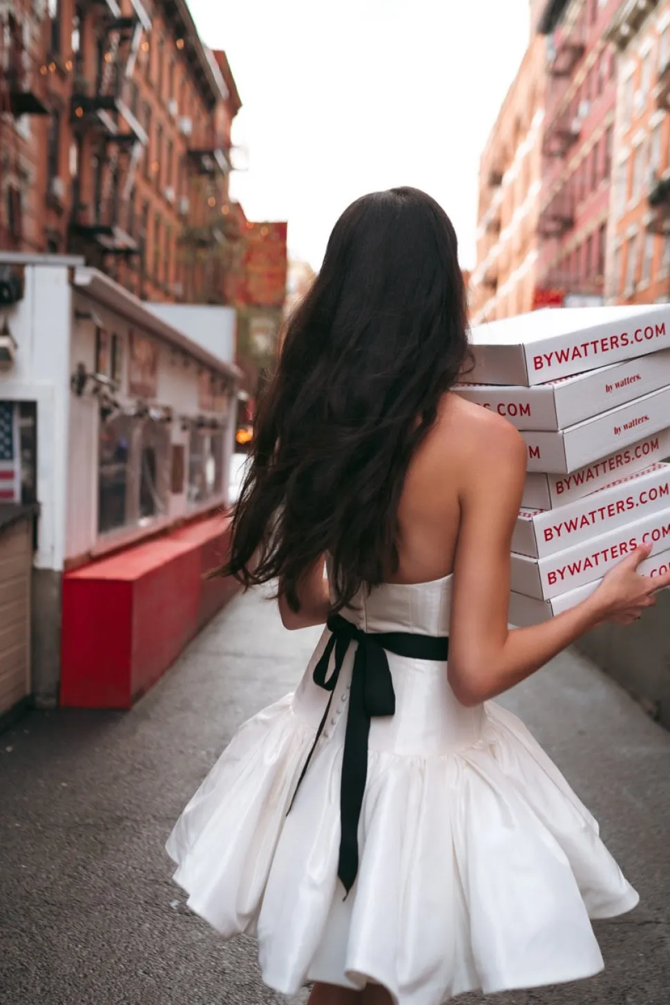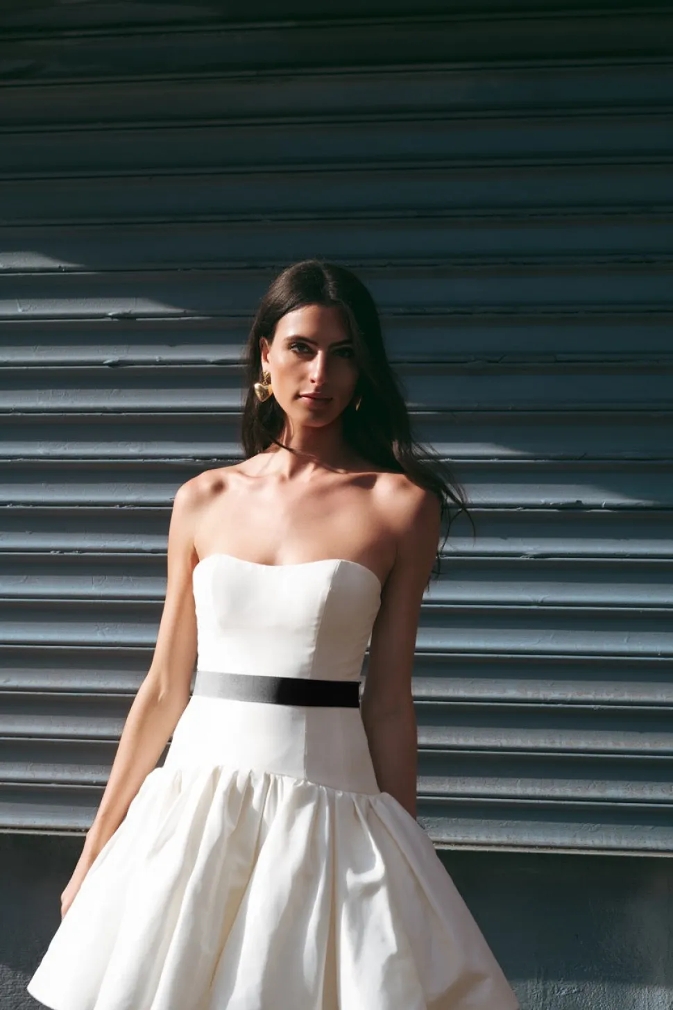 The magic in By Watters—a family-run business of designers, seamstresses, and pattern makers—is understanding how the wants and needs of brides evolve. Embracing drama, versatility, and individuality, By Watters makes dresses for the brides and bridesmaids you want to be. With a dropped waist, full skirt, and removable sash, the Leoni Dress is the acme of bridal style.
