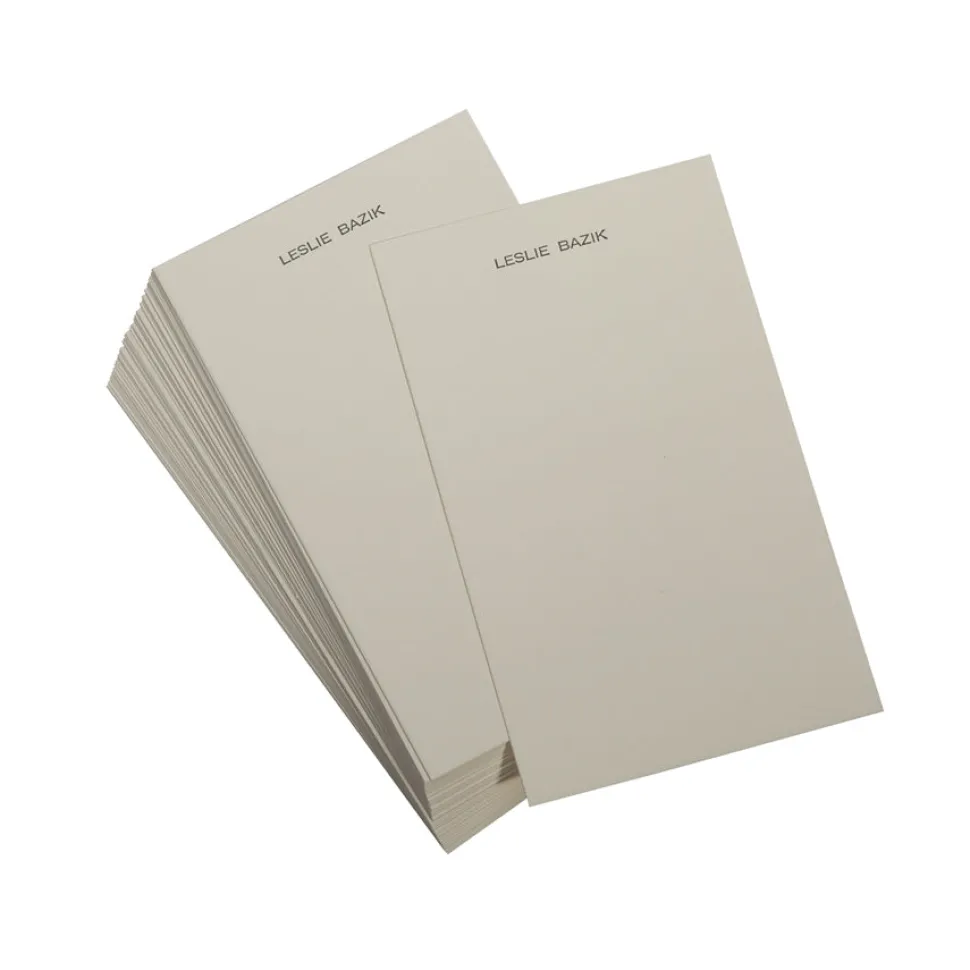 Founded in 1969, Graphic Image’s notebooks and accessories are united by the finest writing text paper, meticulously crafted smyth-sewn binding, and clean design. Working with tanneries in Italy and France, and embracing at once the unconventional and the traditional these are products that offer profound quality, functionality, and unyielding style. Make notes, dash off a list, or white a quick thank-you note in style with the Letterpress Personalized Jotter Cards. These simply elegant cards feature genuine ltterpress printing of your name in charcoal gray ink for a vintage look.