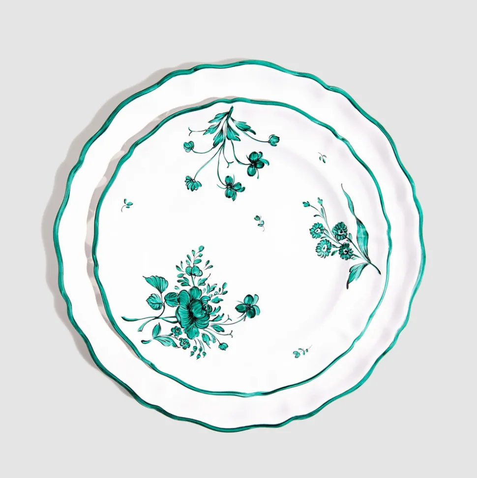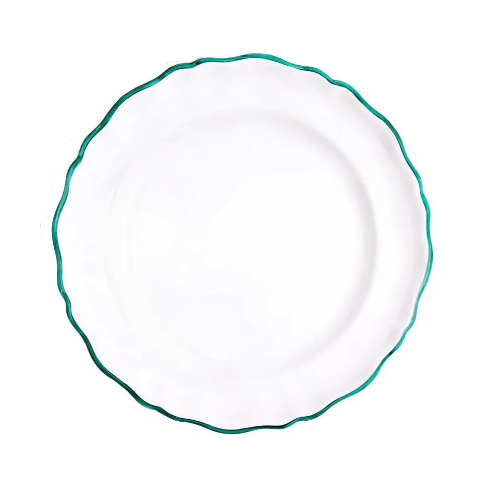 Zoë de Givenchy’s French-made ceramics, linen, and flatware display refinement above all else. This, and a certain je ne sais quoi, were gleaned from the table of her husband’s uncle, Hubert de Givenchy, the legendary couturier, and one of the century’s finest hosts. The L’Horizon collection features shapes from the 18th century as traditional serving styles come to meet modern needs. The L’Horizon Dinner Plate in Vert arrives with a lively green along its Louis XVI rim.