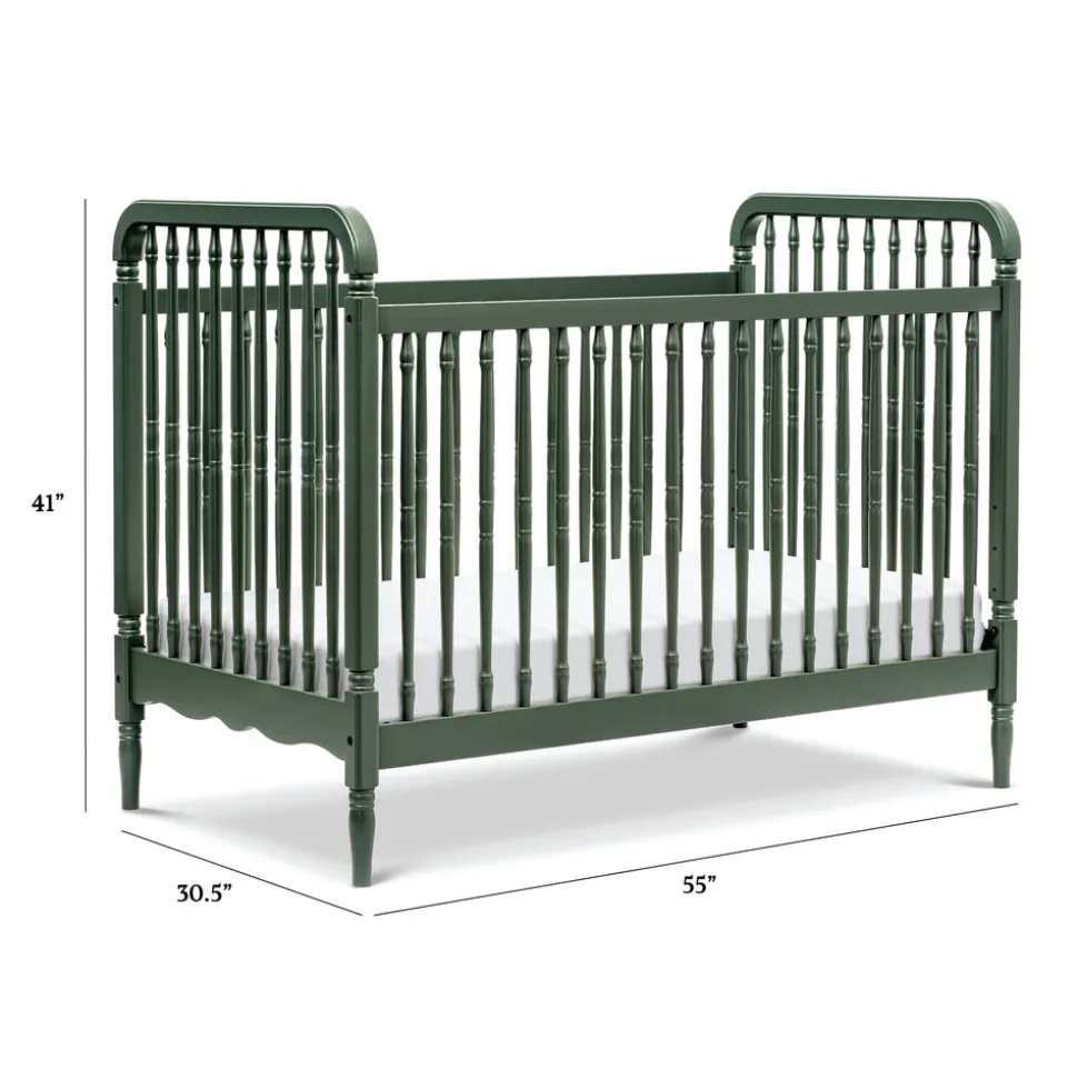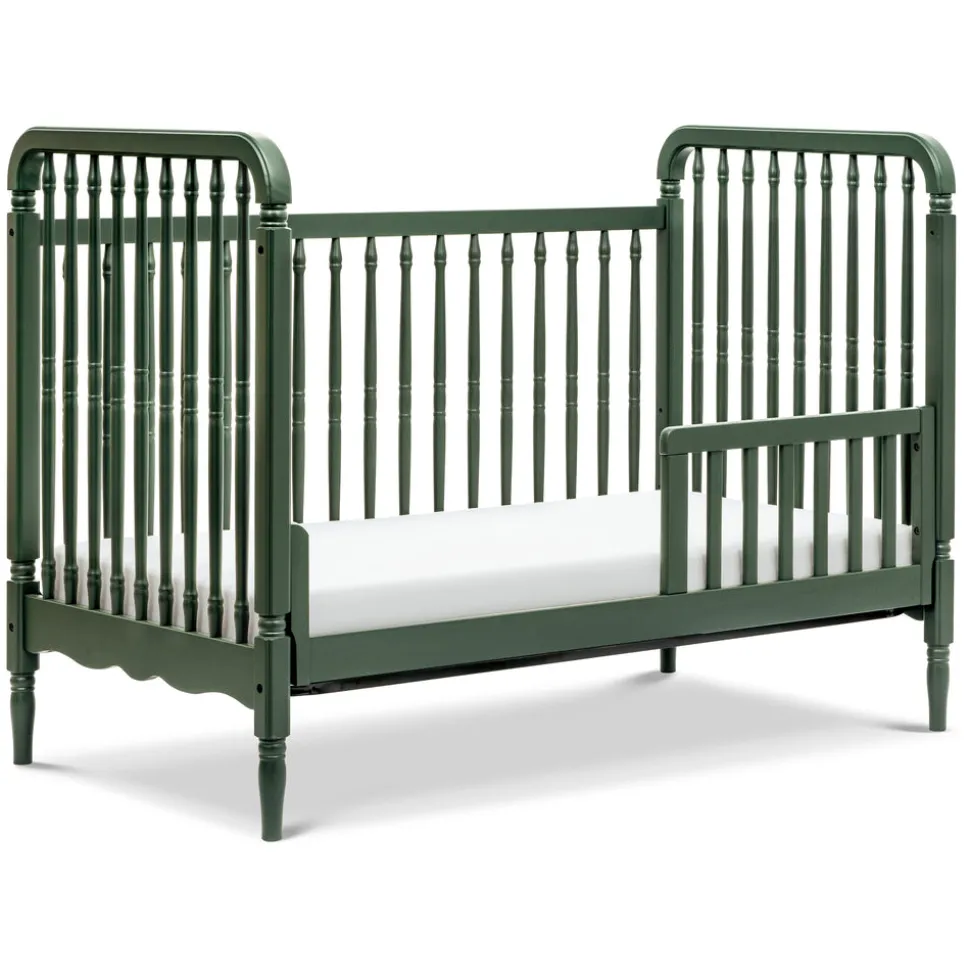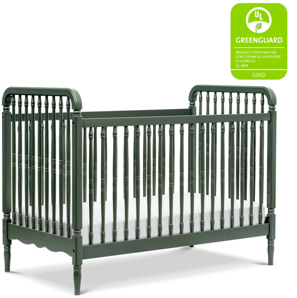 Crafted from sustainably sourced wood with thicker spindles for added durability. Includes toddler bed conversion kit for extended use. Converts from crib to toddler bed and daybed. Finished in a rich forest green hue. Designed to meet or exceed ASTM and U.S. CPSC safety standards. GREENGUARD Gold Certified.