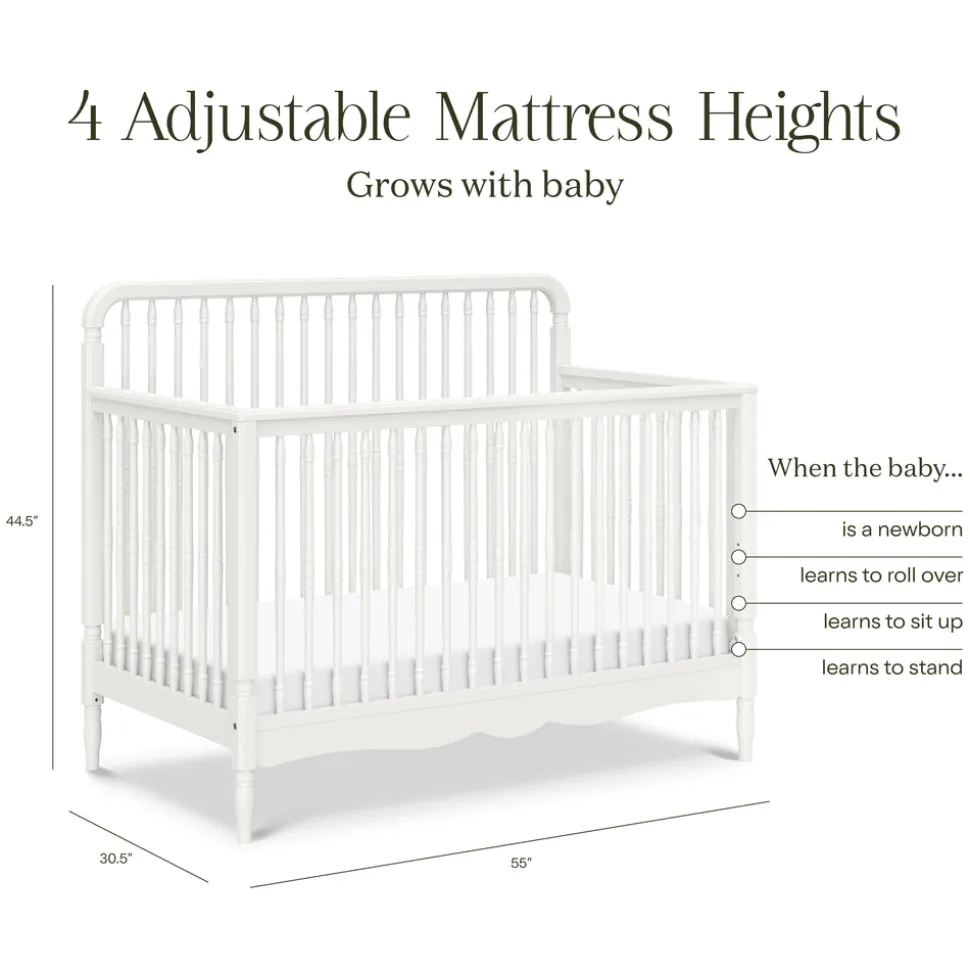 Made to treasure, Namesake brings quiet sophistication to the nursery and beyond. Imbuing heirloom-quality craftsmanship with modern sensibility, these timeless essentials are made to be cherished for years to come. The Liberty 4-in-1 Convertible Spindle Crib in Warm White brings a heritage-inspired silhouette to life with bold proportions and graceful detailing. Featuring thick turned spindles and a soft white finish, this crib grows with your child—transitioning from crib to toddler bed, daybed, and full-sized bed with ease.