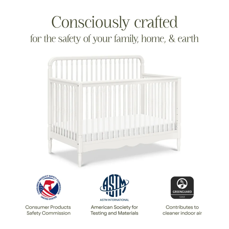 Crafted from sustainably sourced wood with a warm white finish. Features thick spindles and classic design details. Converts from crib to toddler bed, daybed, and full-sized bed with the purchase of conversion kits. Designed to meet or exceed ASTM and U.S. CPSC safety standards. GREENGUARD Gold Certified.