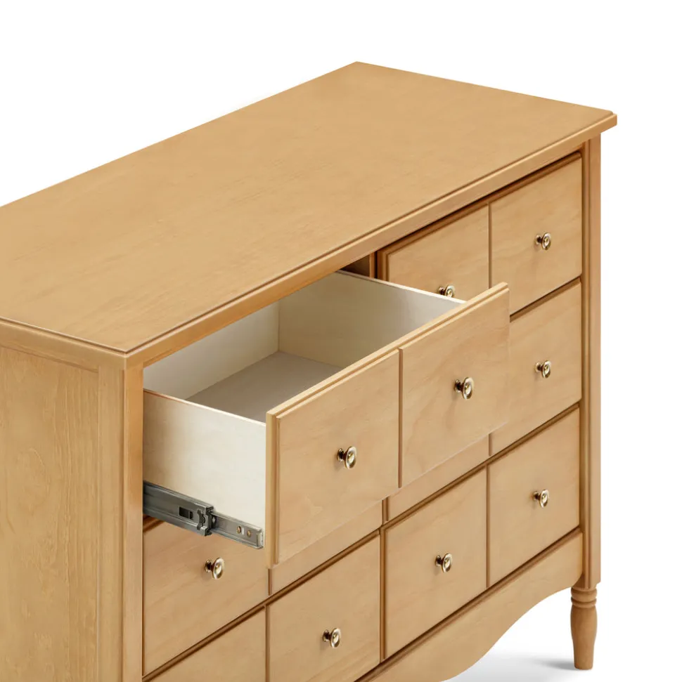 Made to treasure, Namesake brings quiet sophistication to the nursery and beyond. Imbuing heirloom-quality craftsmanship with modern sensibility, these timeless essentials are made to be cherished for years to come. The Liberty 6-Drawer Assembled Dresser in Honey features a vintage-inspired design with apothecary-style drawer fronts, tapered legs, and a gently scalloped apron. Finished in a warm golden hue, it offers versatile storage and timeless style to complement the Liberty, Abigail, and Winston crib collections.