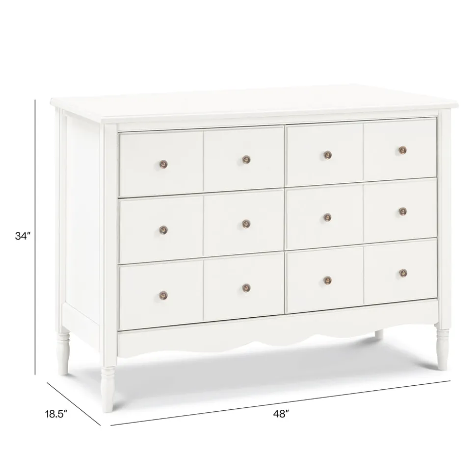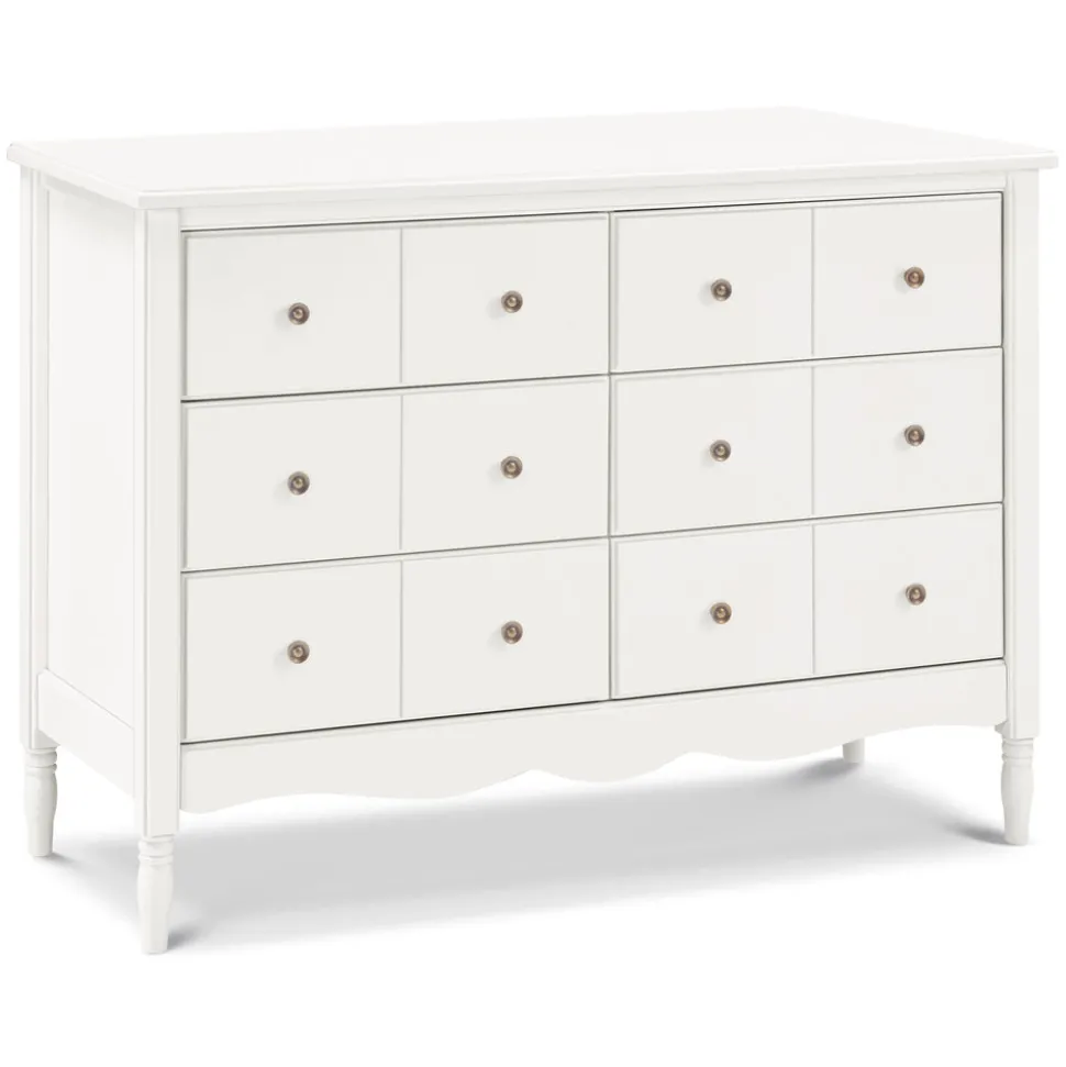 Made to treasure, Namesake brings quiet sophistication to the nursery and beyond. Imbuing heirloom-quality craftsmanship with modern sensibility, these timeless essentials are made to be cherished for years to come. The Liberty 6-Drawer Assembled Dresser in Warm White offers vintage-inspired charm with thoughtfully crafted details. Apothecary-style drawer fronts, tapered legs, and a scalloped apron create a timeless silhouette that pairs beautifully with the Liberty, Abigail, and Winston cribs.